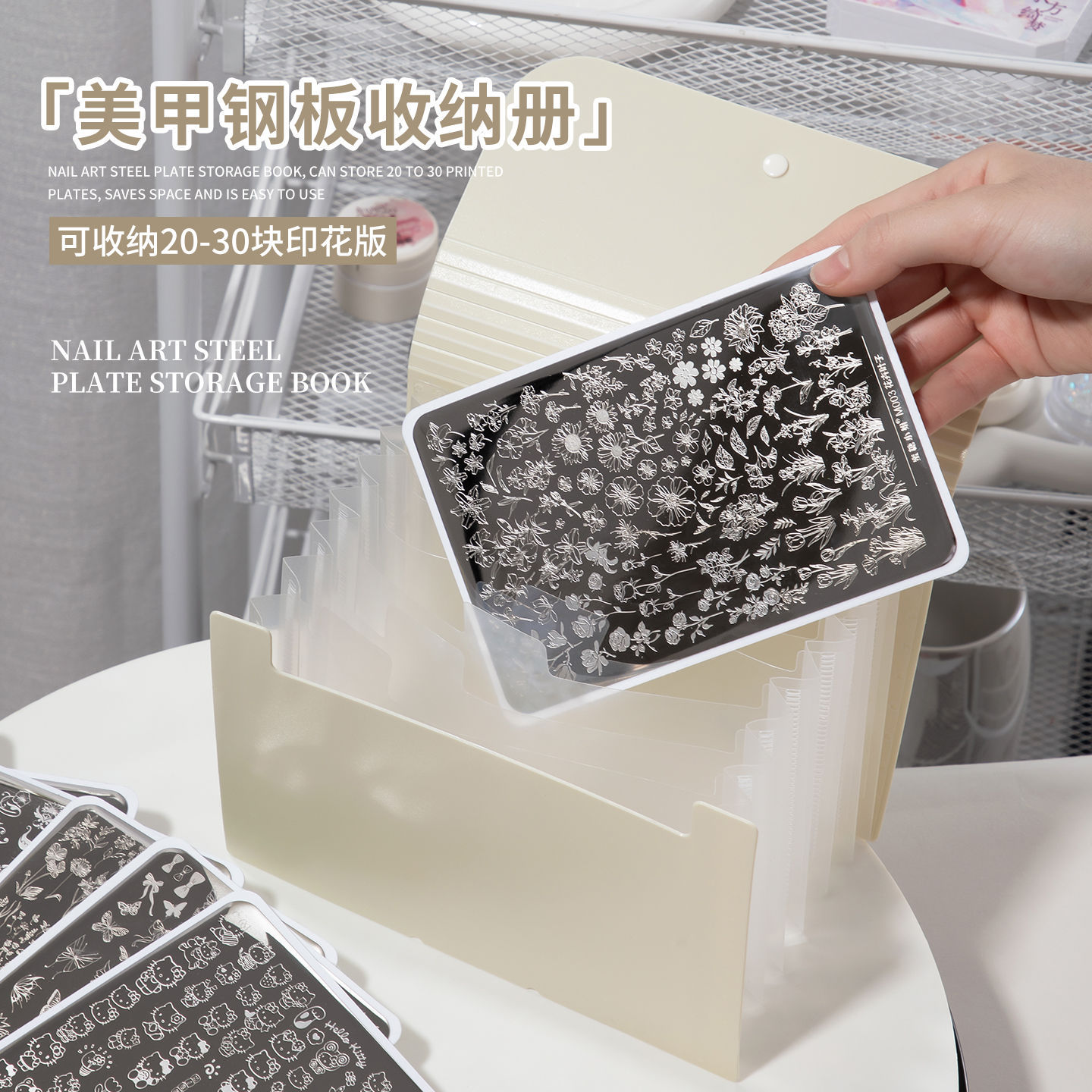 美甲店印花钢板收纳册可折叠防尘透明防刮花指甲贴纸整理专用工具