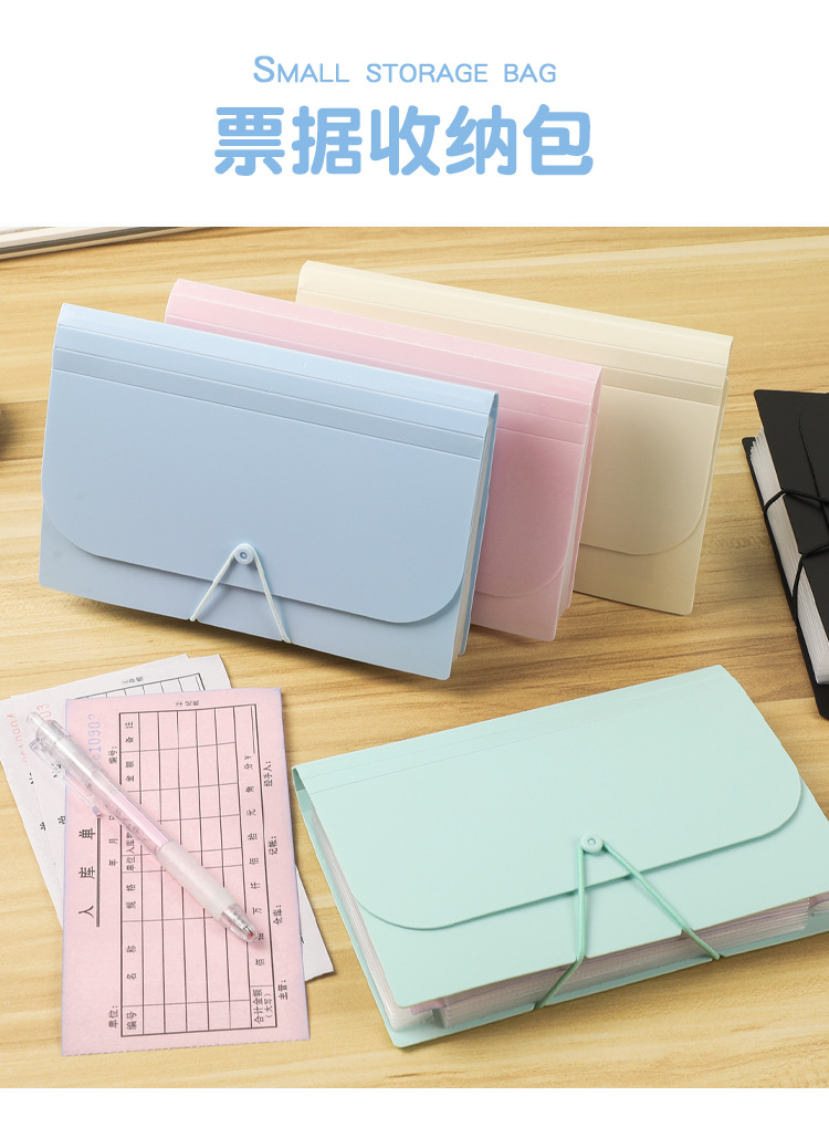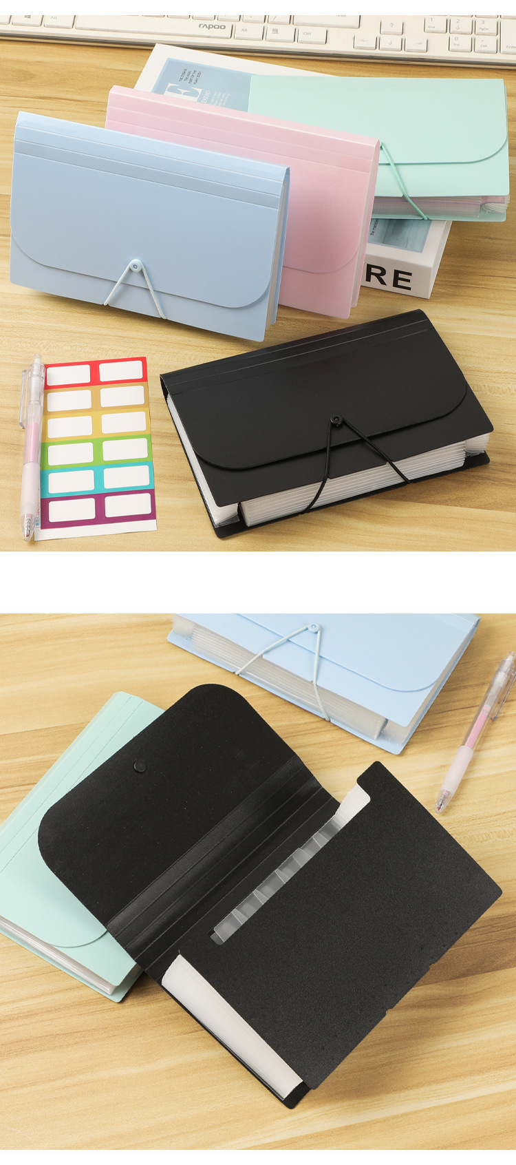 A6大容量手帳ステッカー収納ブック、伸縮式収納袋、多層ファイルフォルダ、カード、領収書、メモ収納クリップ