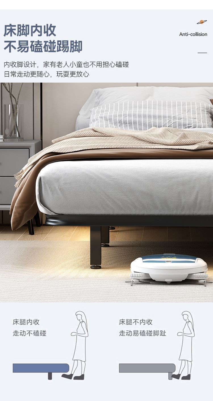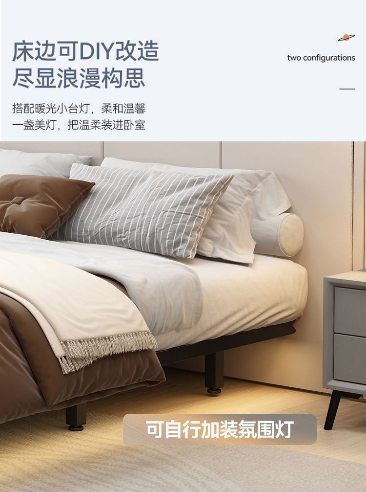 悬浮床现代简约无床头日式极简静音双人床全钢排骨架主卧铁艺床架