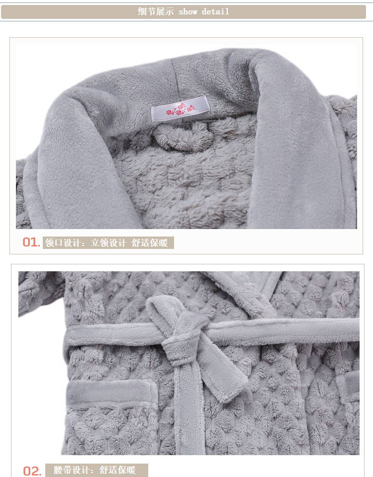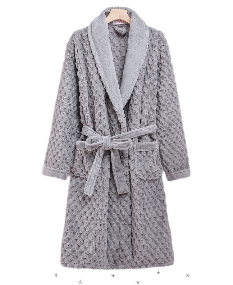 酒店式浴袍男女睡袍秋冬款法兰绒保暖长袖睡衣中长款情侣晨袍纯色