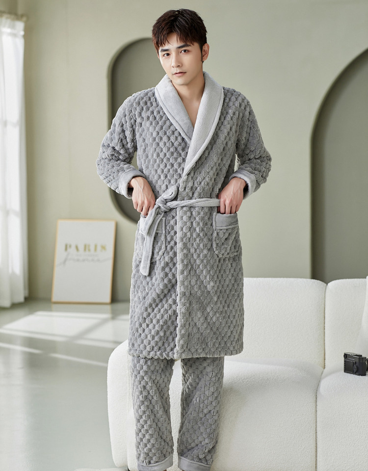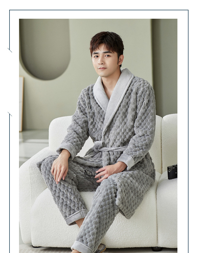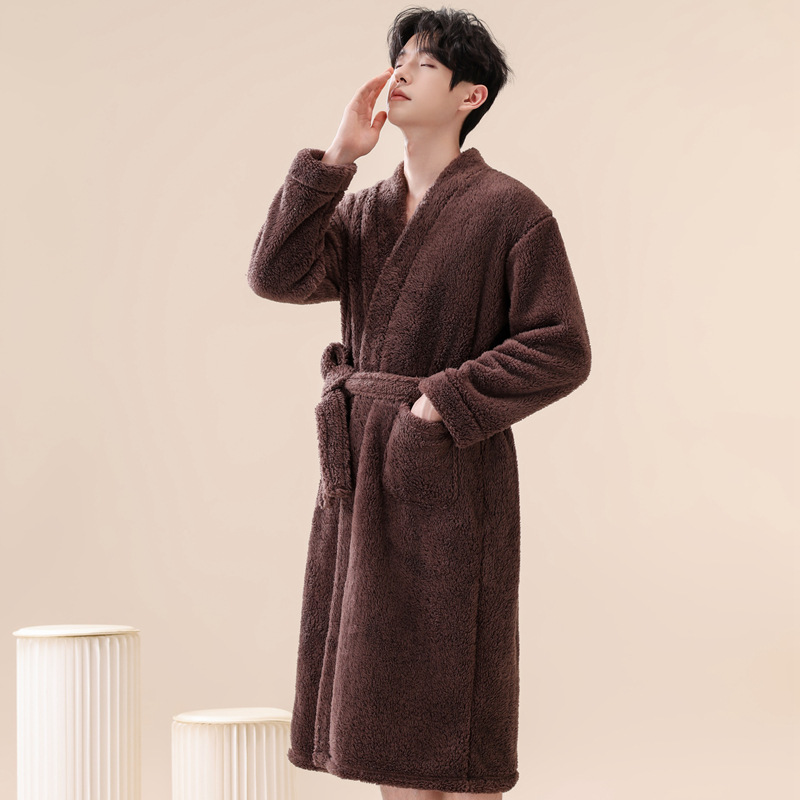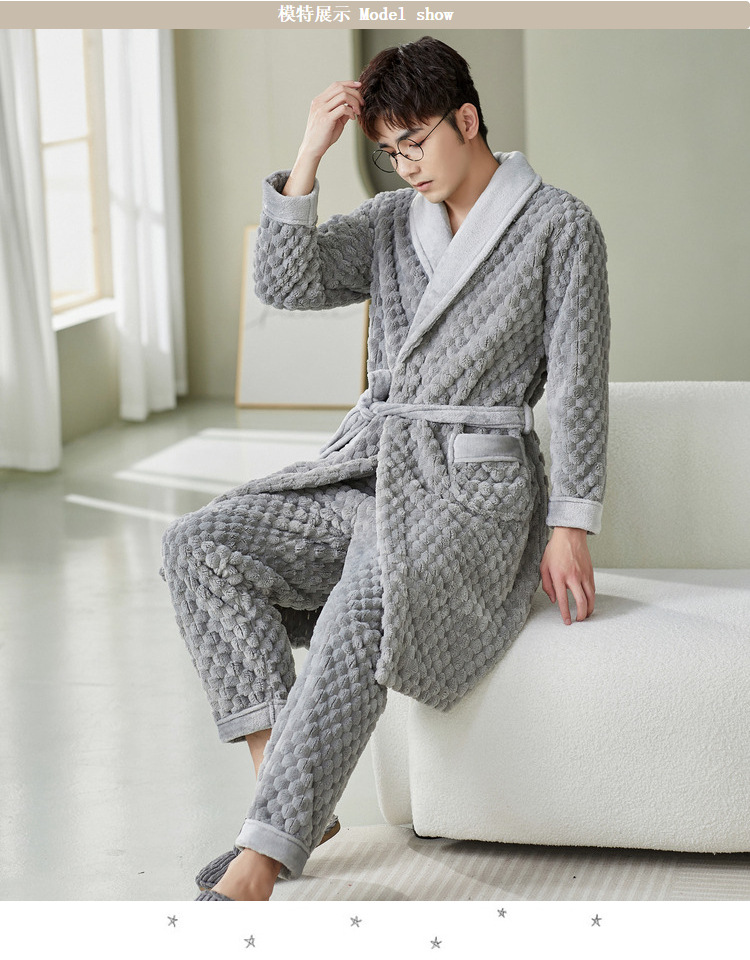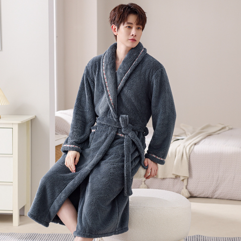 珊瑚绒睡袍男浴袍秋冬保暖中长款简约休闲居家晨袍法兰绒睡衣长袍