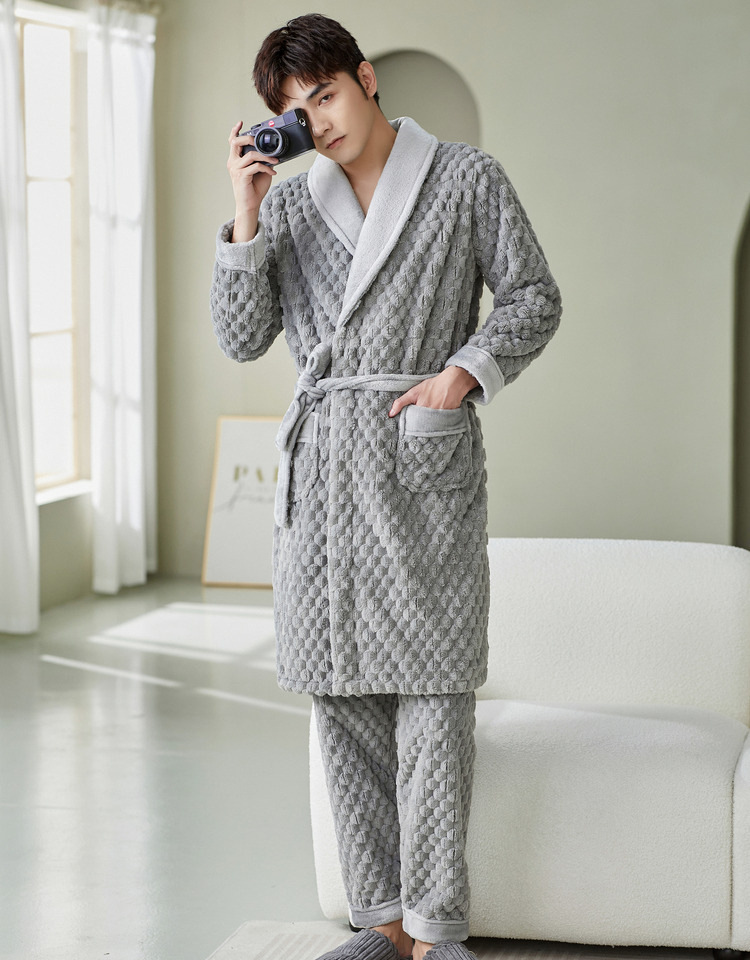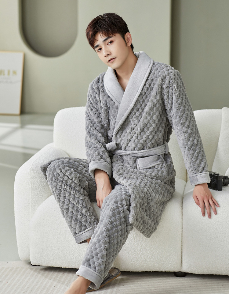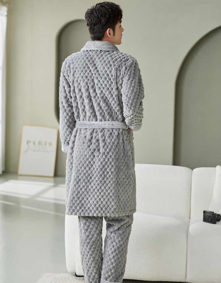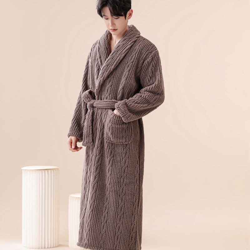 珊瑚绒睡袍男浴袍秋冬保暖中长款简约休闲居家晨袍法兰绒睡衣长袍