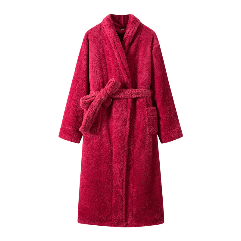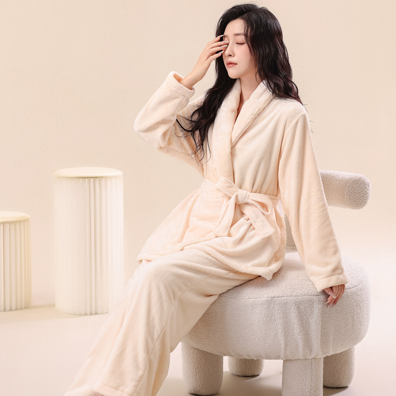 女性用寝間着 秋冬用 コーラルベルベットバスローブ ミドル丈 フランネルパジャマ メンズ 春秋用 ホームウェア 保温 長袖
