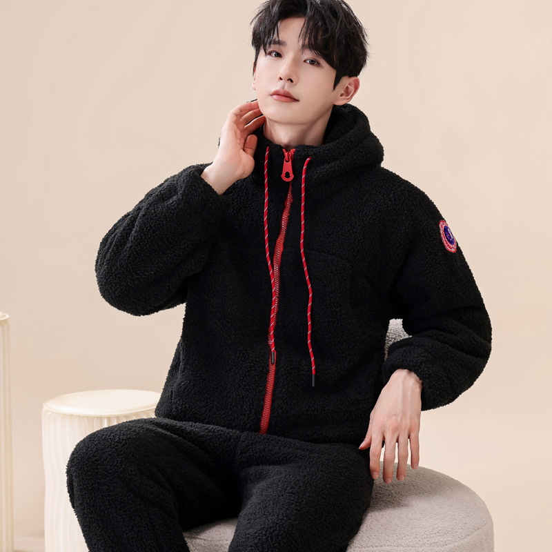 可外穿家居服套装男秋冬双层复合绒抗寒保暖睡衣大码宽松简约外套