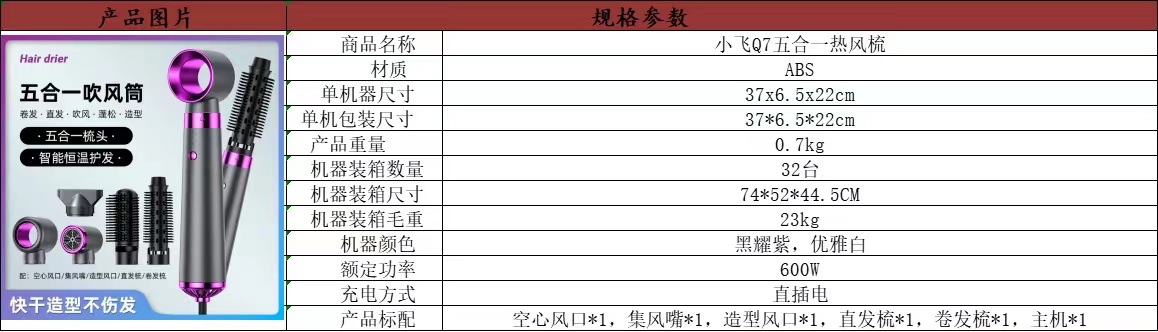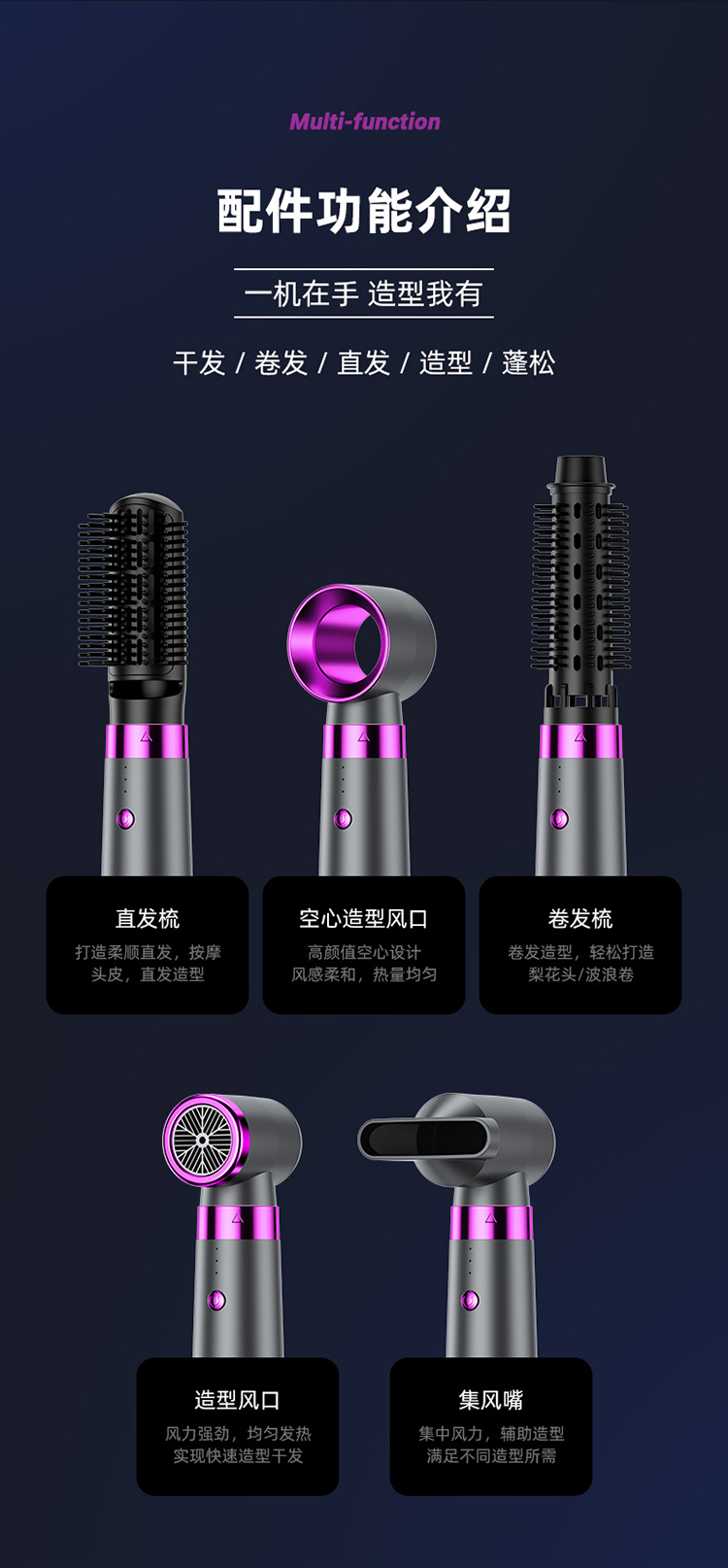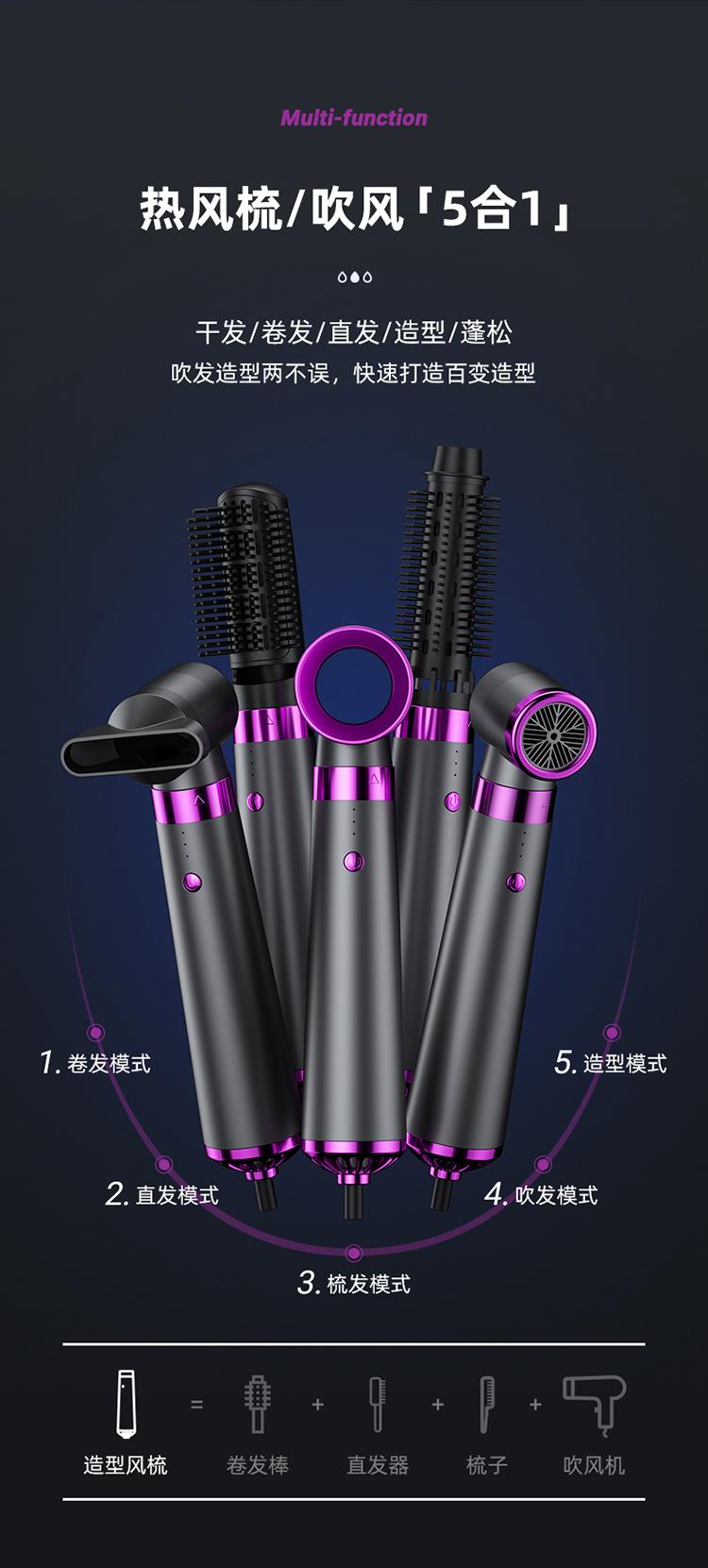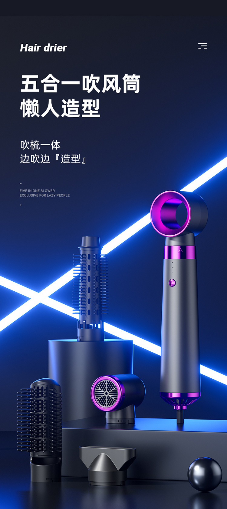 クロスボーダー五合一ドライヤー自動巻き髪棒巻き直両用美容スタイル櫛電気ブロー筒冷熱風櫛