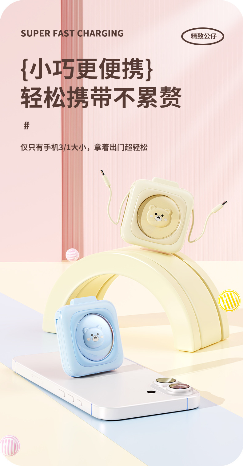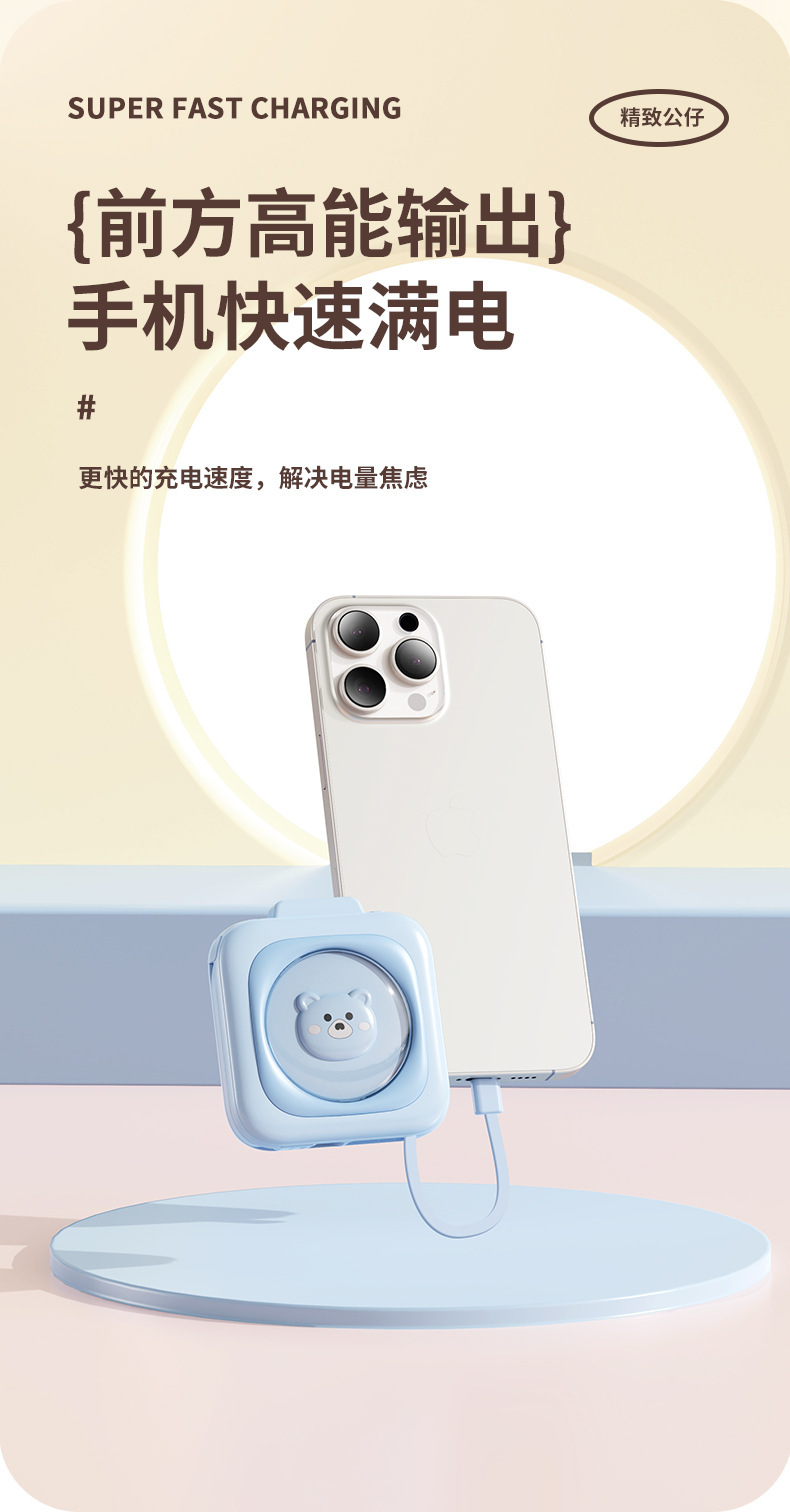 新款礼品小巧卡通自带线充电宝10000毫安大容量移动电源定 制