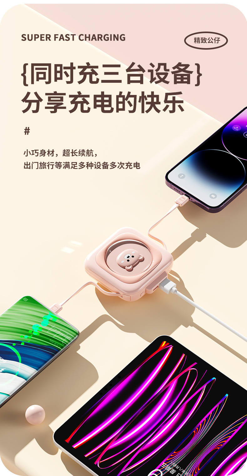 移动电源新款礼品小巧卡通自带线充电宝10000毫安大容量充电宝印