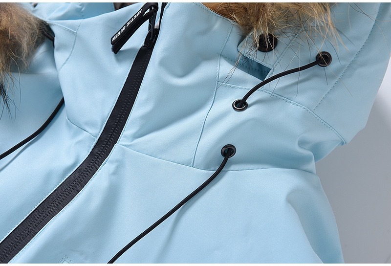 新型のスキー服の女性の極寒の専門の双板の雪の服の防風の羽毛の保温の越境の対外貿易のスキー服の女性の上着