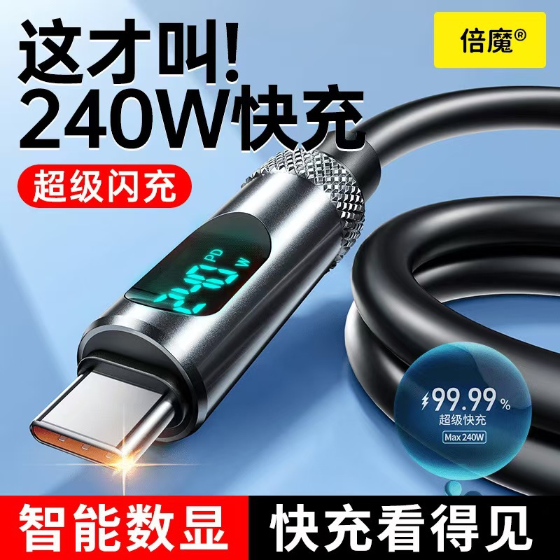[国境を越えた人気モデル] Beimo 240W 超高速充電スマート デジタル ディスプレイ Huawei Apple Type-C データ ケーブルに適しています