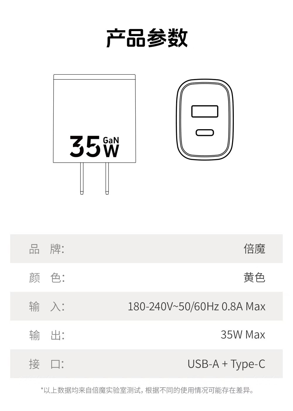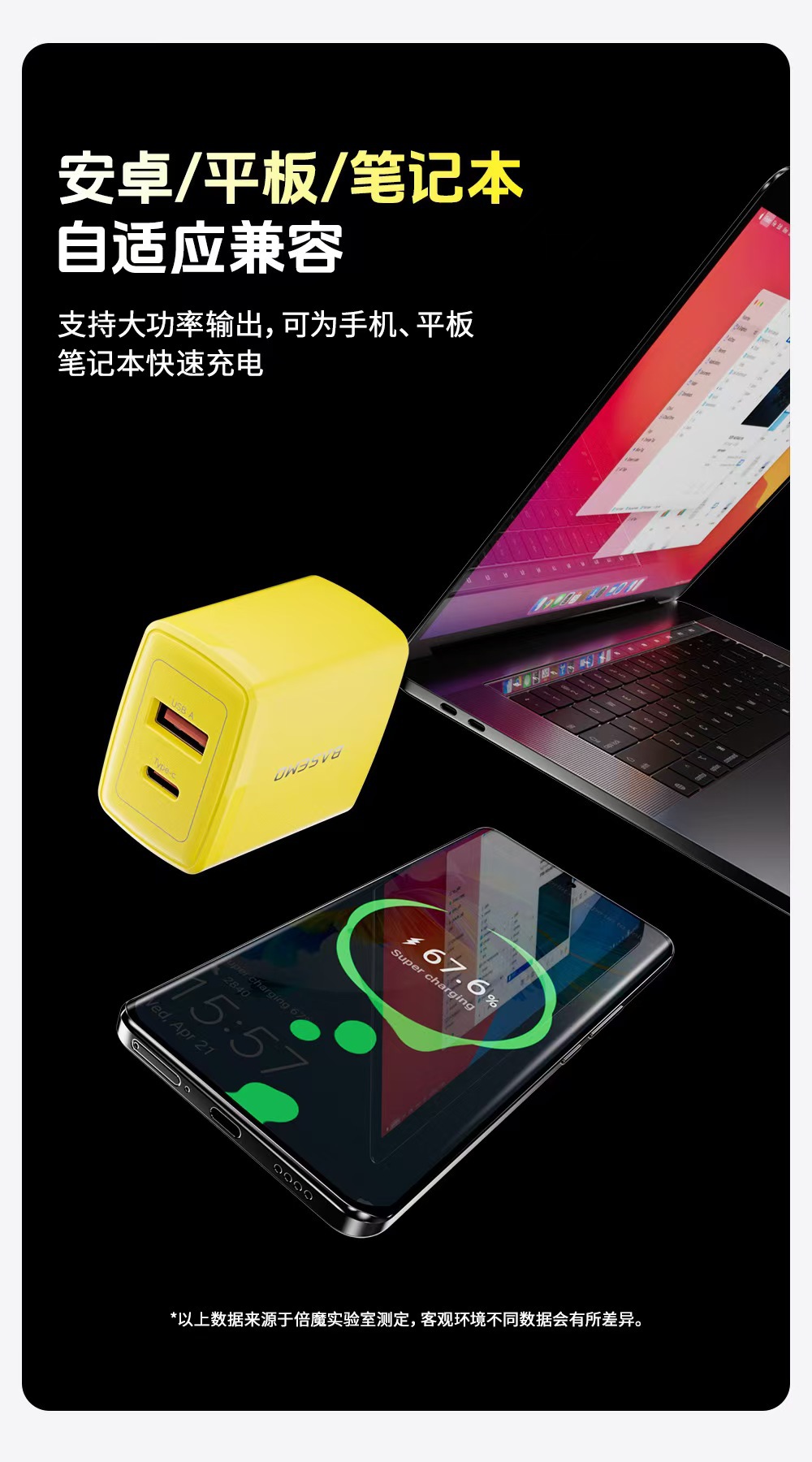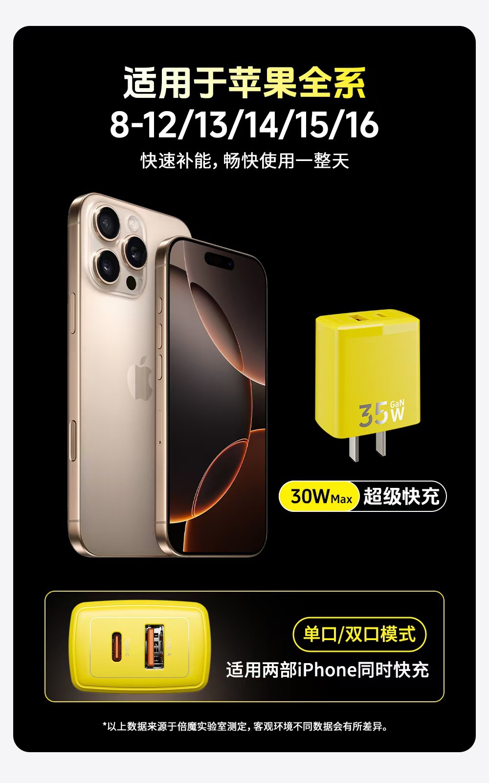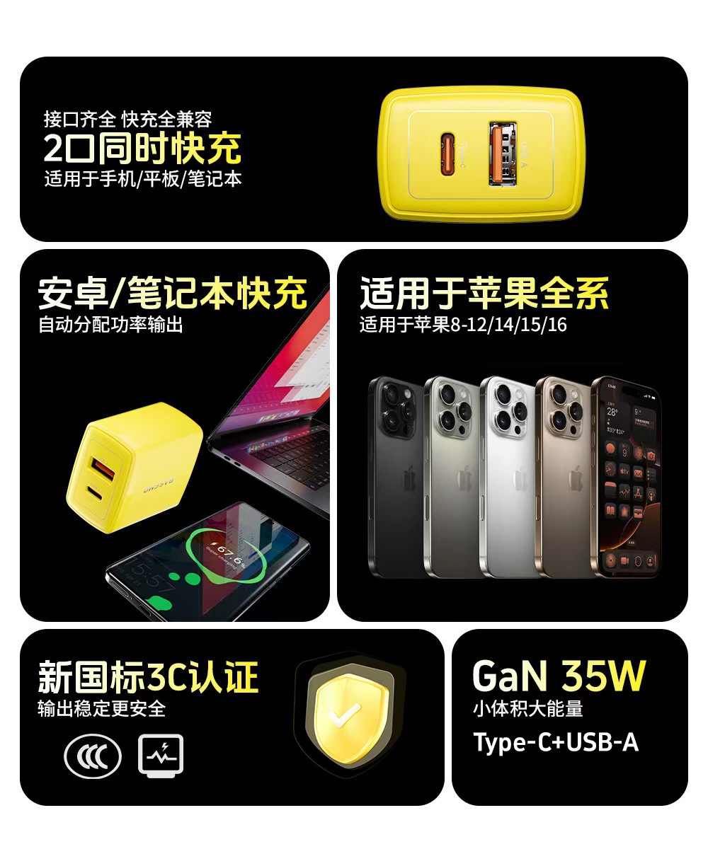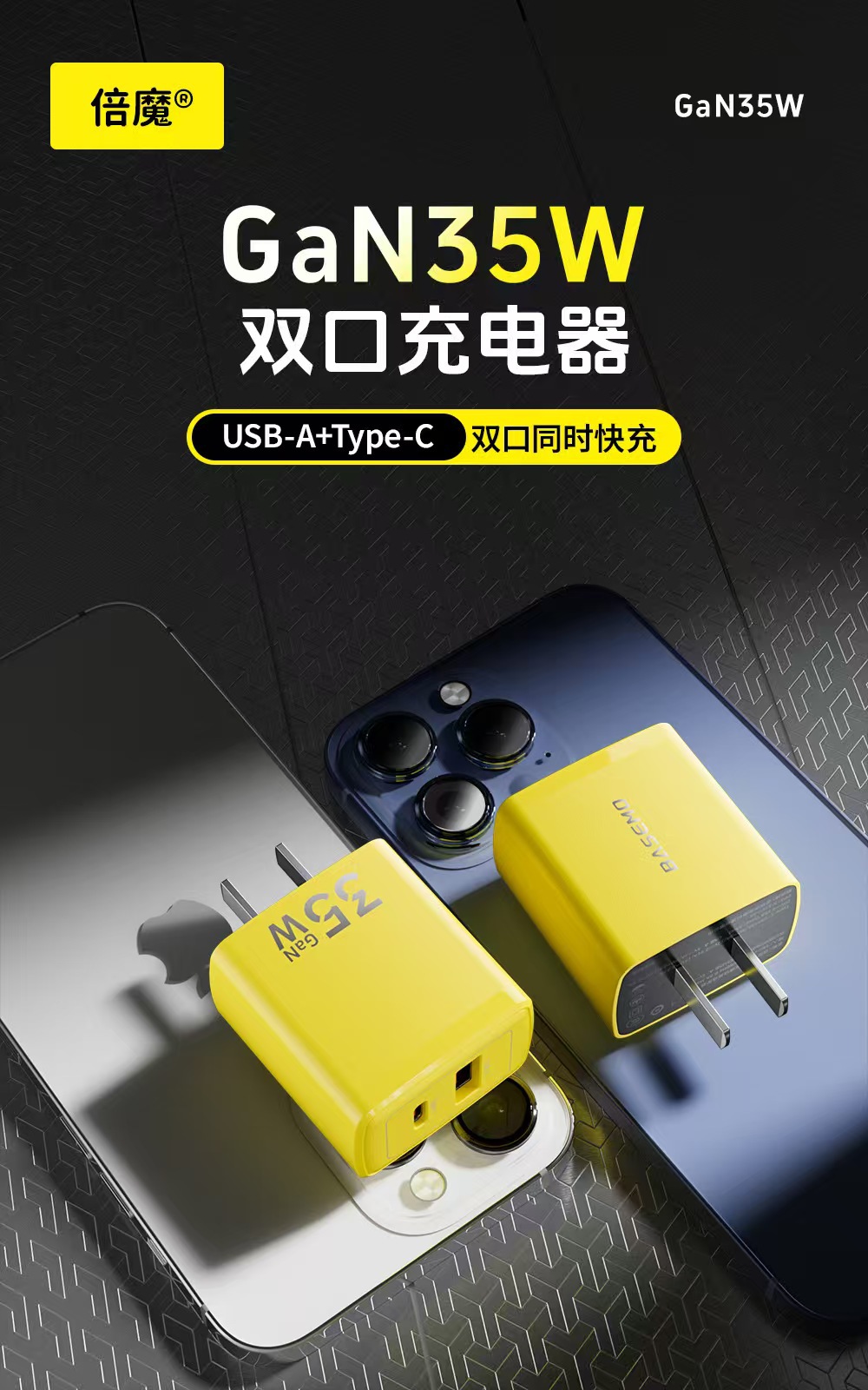 倍魔gan 35w窒化ガリウム充電器はリンゴ1615アンドロイド1C1A二口急速充電タブレット充電に適している