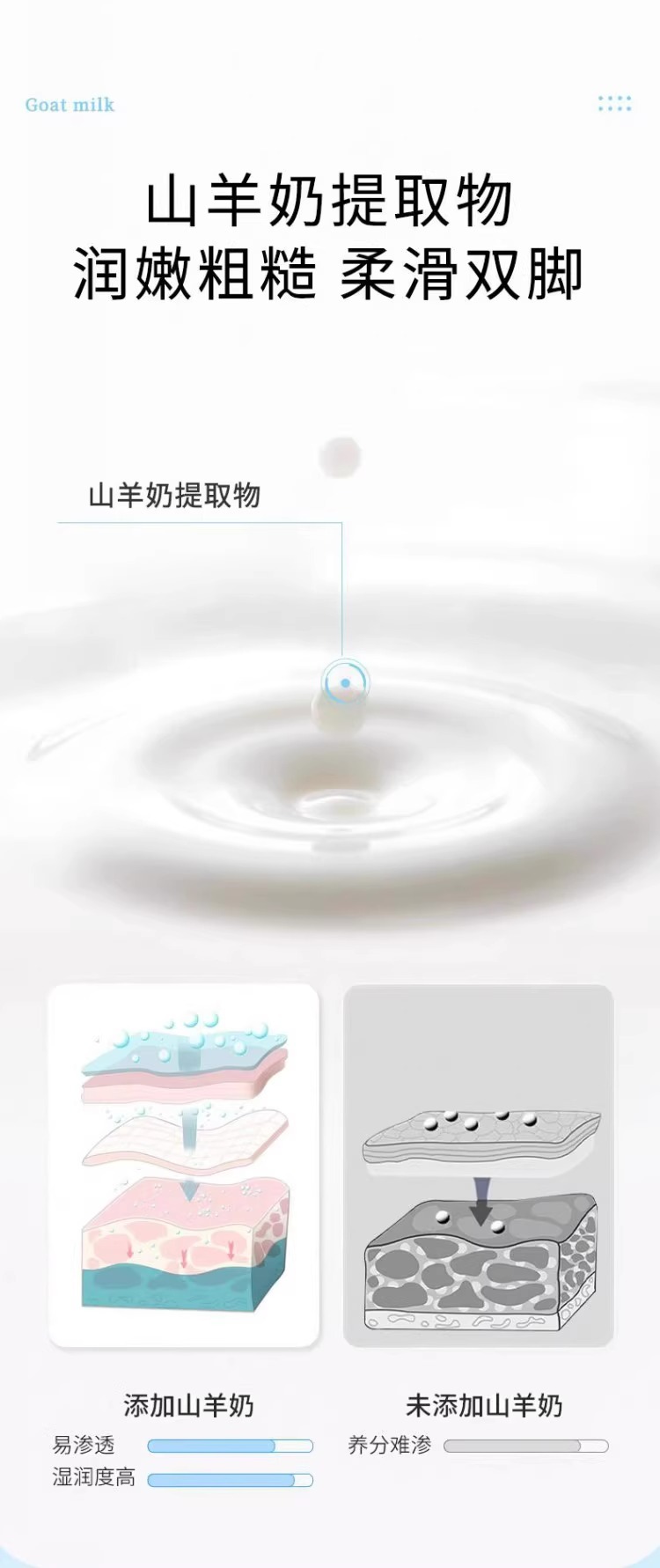 ヤギの乳の足の膜のみずみずしい保湿の潤いは水のかかとを補います。