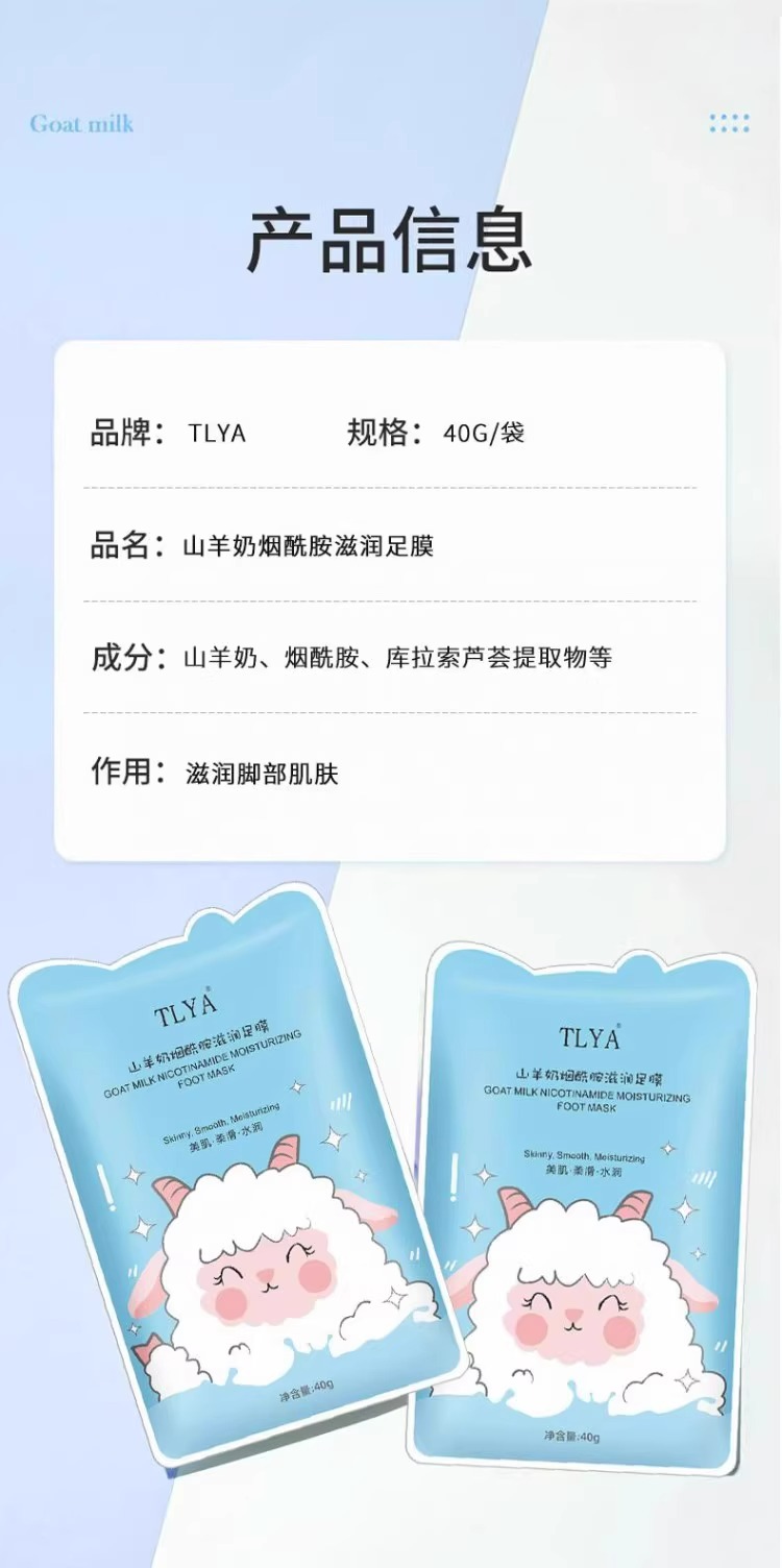 TLYA山羊奶烟酰胺滋润足膜补水保湿莹润嫩滑去角质脚膜