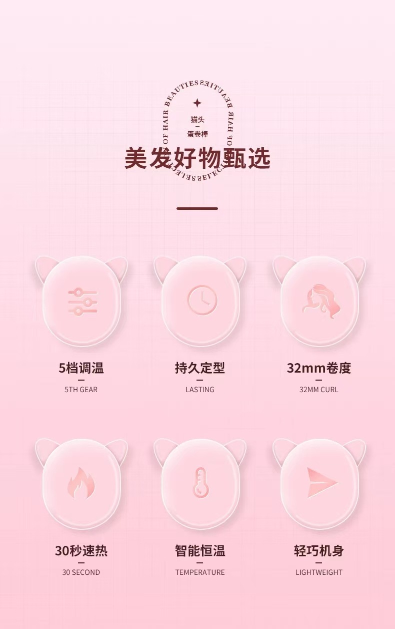 卵巻き頭巻き棒32mm猫爪卵巻き棒マイナスイオンプレート韓国式水波紋神器クロスボーダー携帯