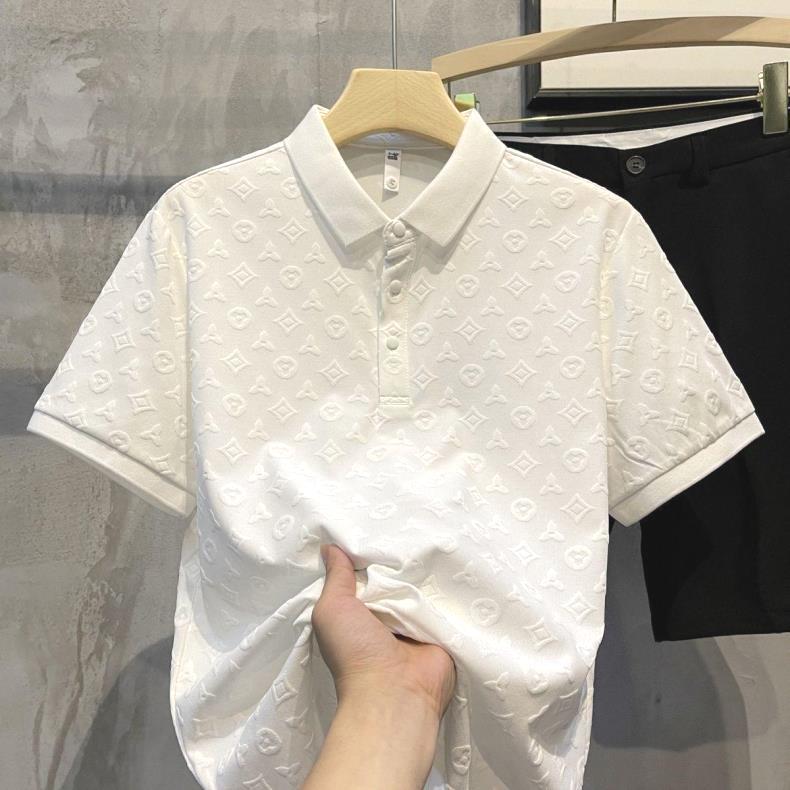 2025ファッション軽豪華ハンサムpoloシャツ夏の新型快適通気青年修身襟半袖tシャツ男