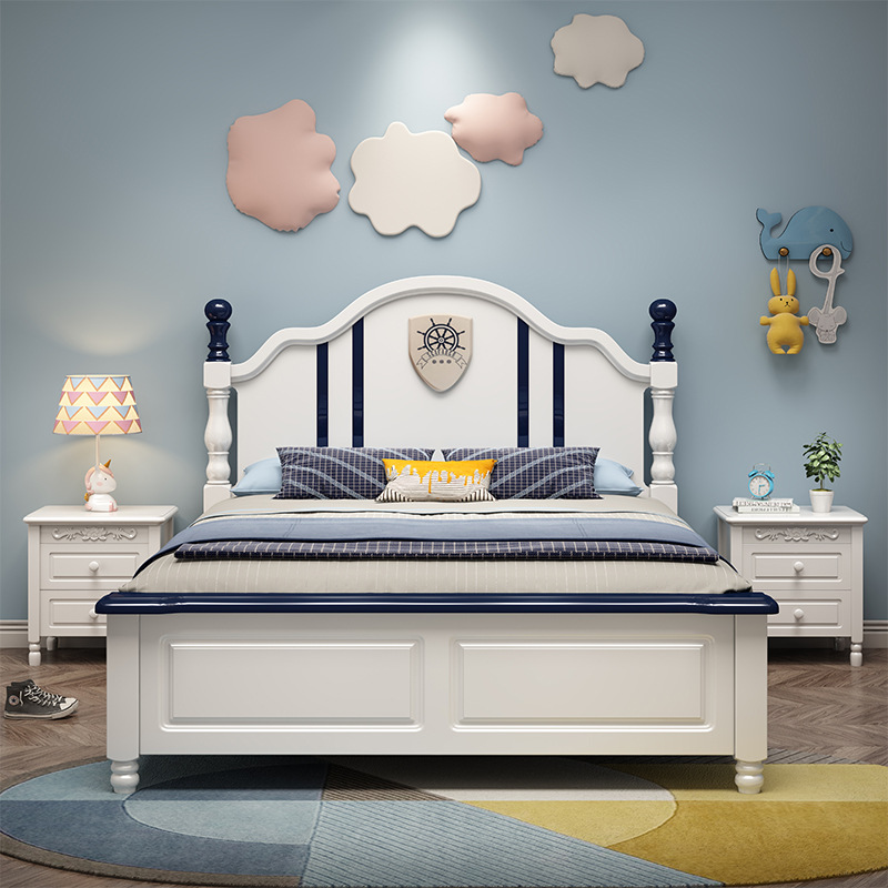 実木児童ベッド男の子女の子1.2メートル青い二次寝室シングルベッド1.5メートル子供ベッド1.35青少年ベッド