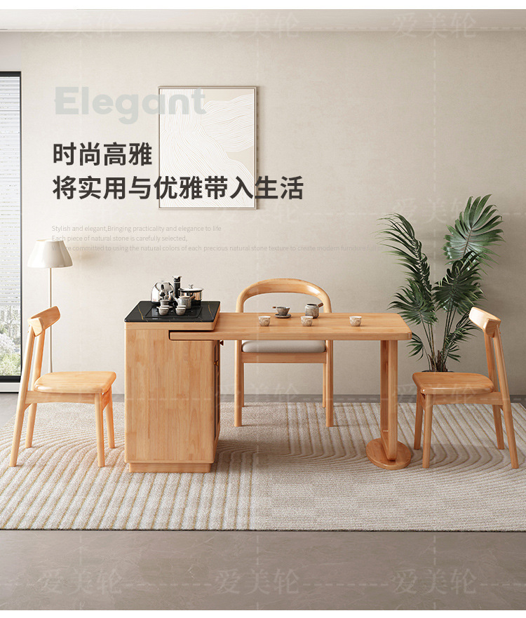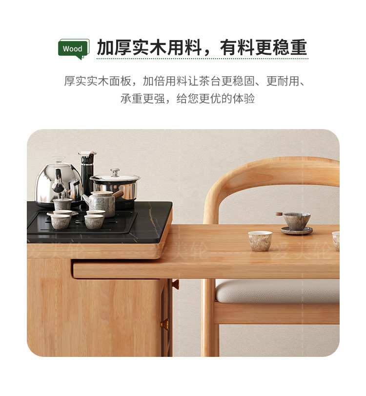 新中国式実木島台茶卓机一体テーブル家庭用オフィス原木ネットレッド2024新型湯たんぽ