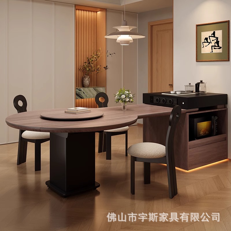 多機能伸縮可能な島台食卓一体可変円卓現代家庭用レストラン高級物置中島台