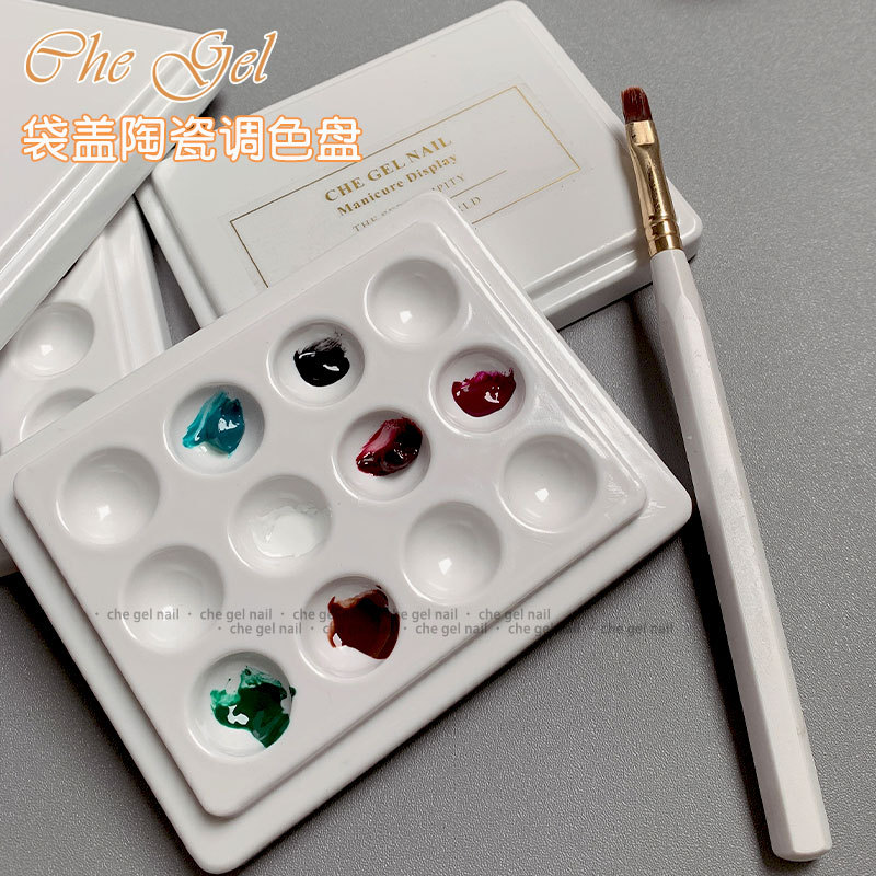 日本式ネイルアートツールネイルカラー液水彩絵の具陶磁器蓋付きネイルパレット防塵12色