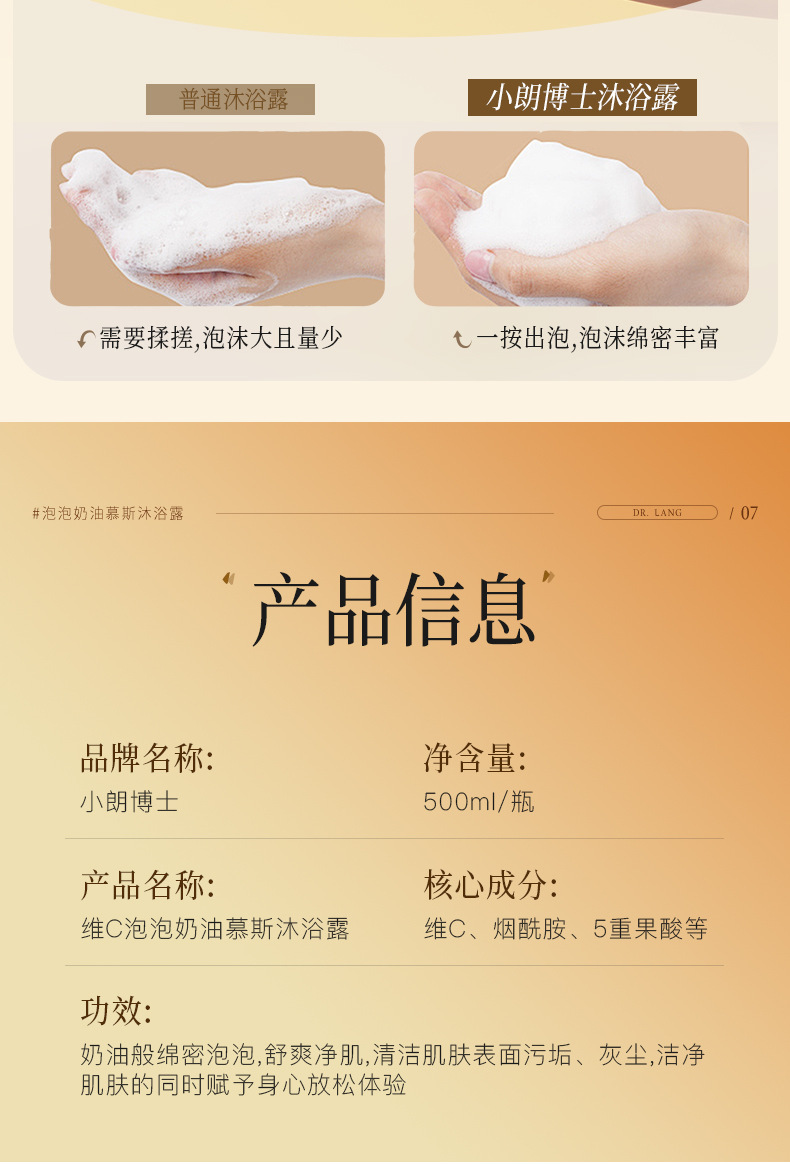 正味内容 Dr.シャオランビタミンCバブルクリームムースシャワージェル500ml