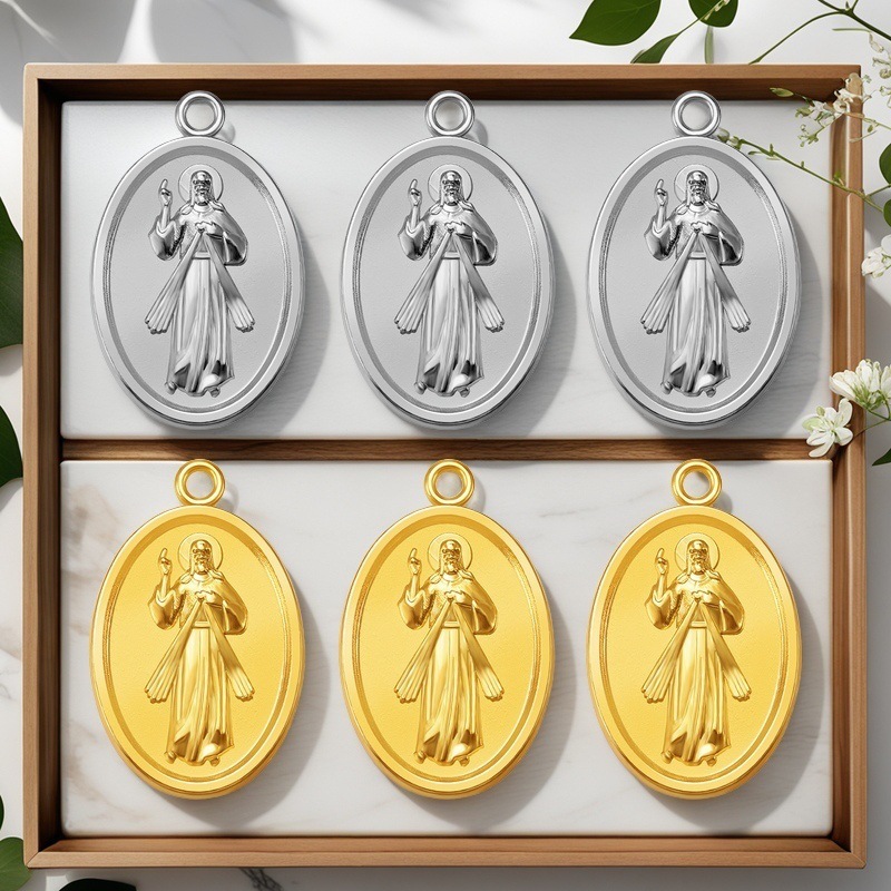 クロスボーダーtemu合金聖母マリア楕円ペンダント個性ネックレスキーホルダー部品
