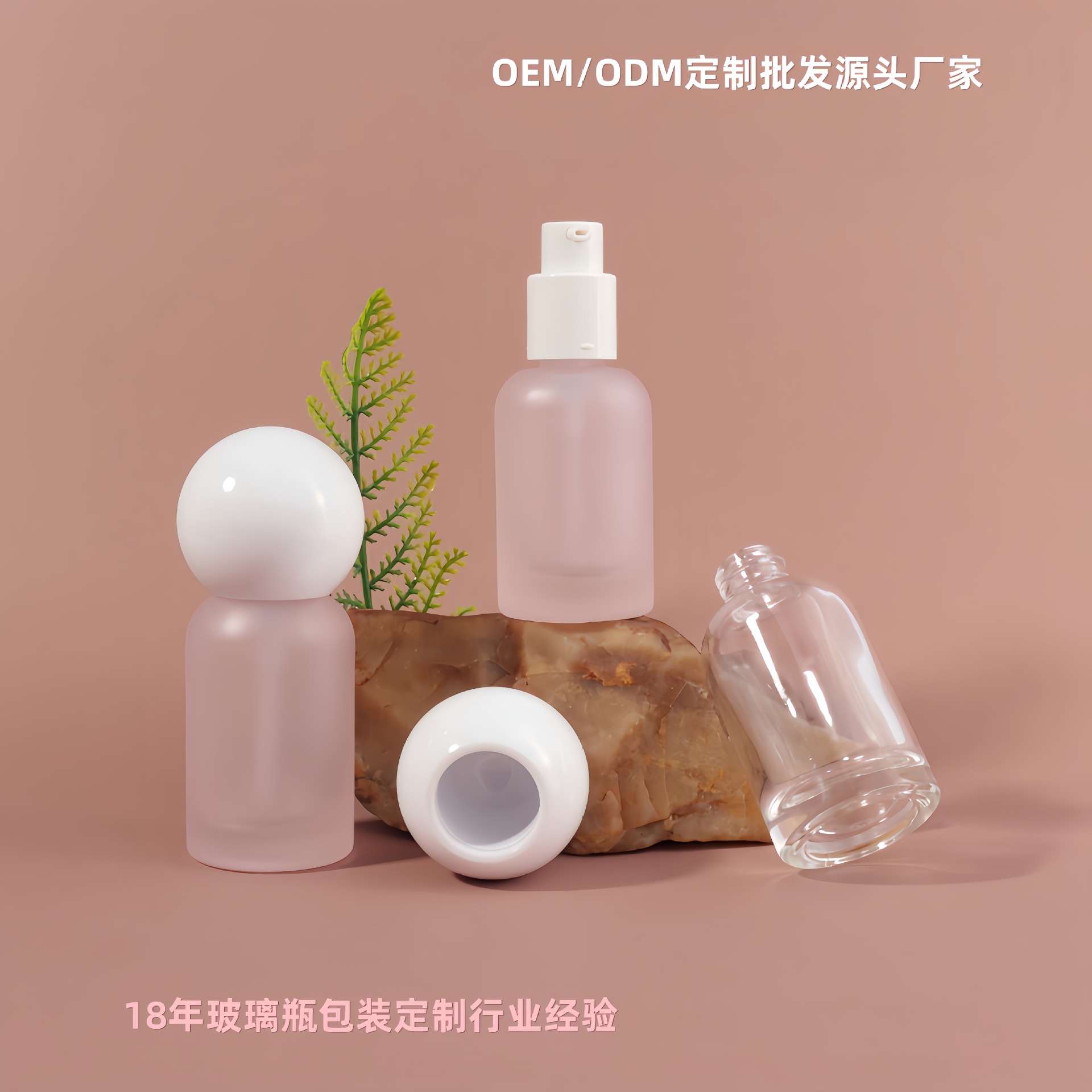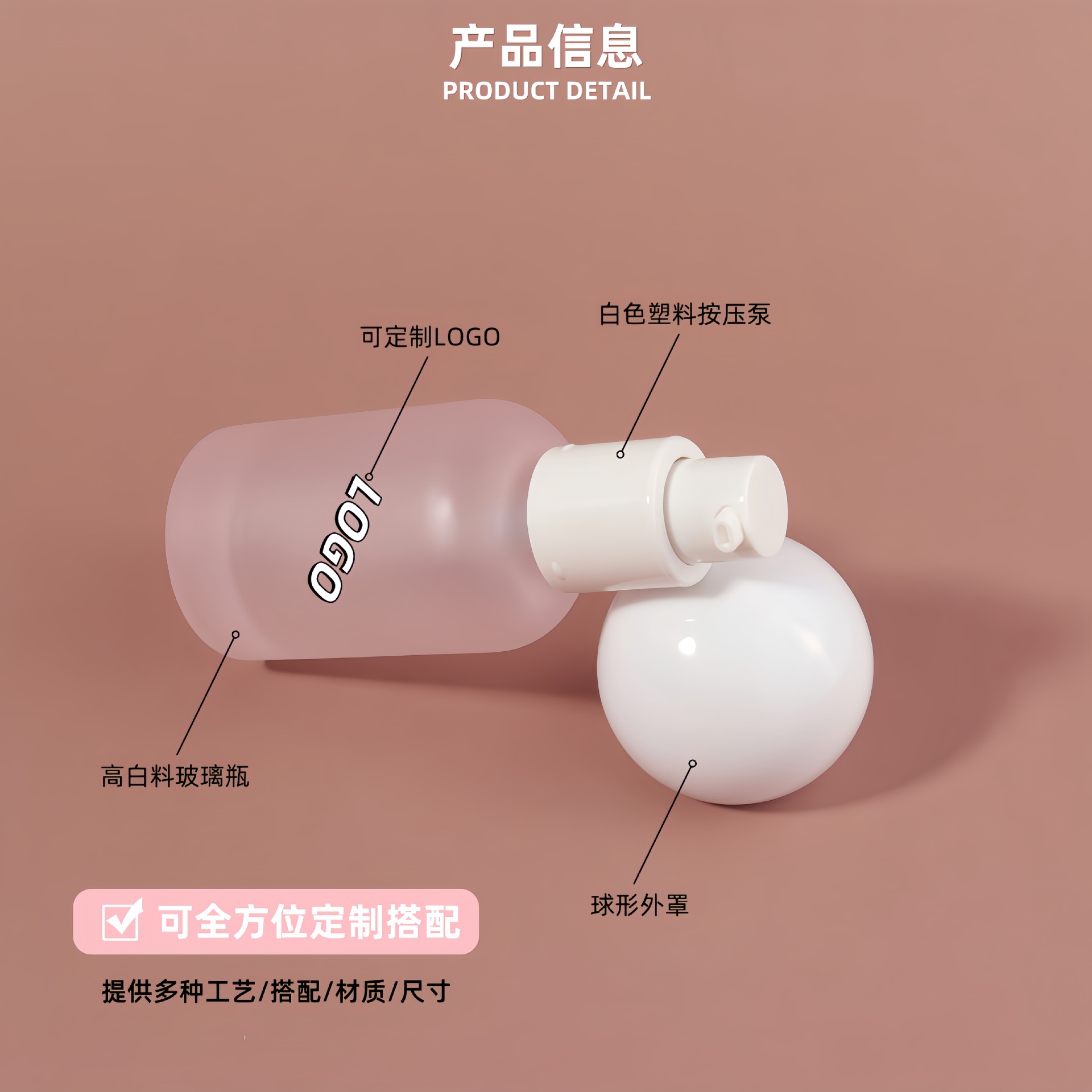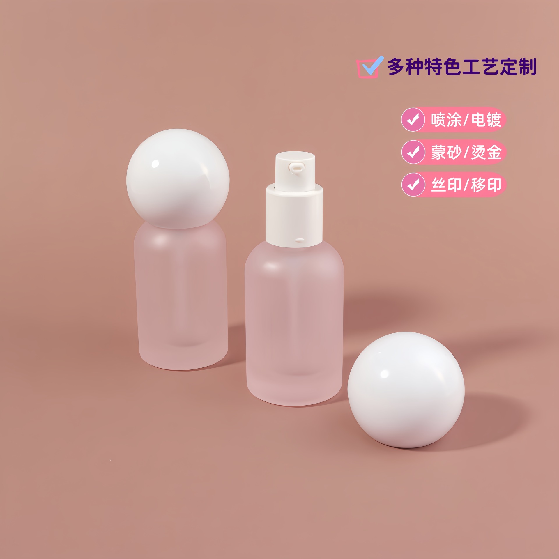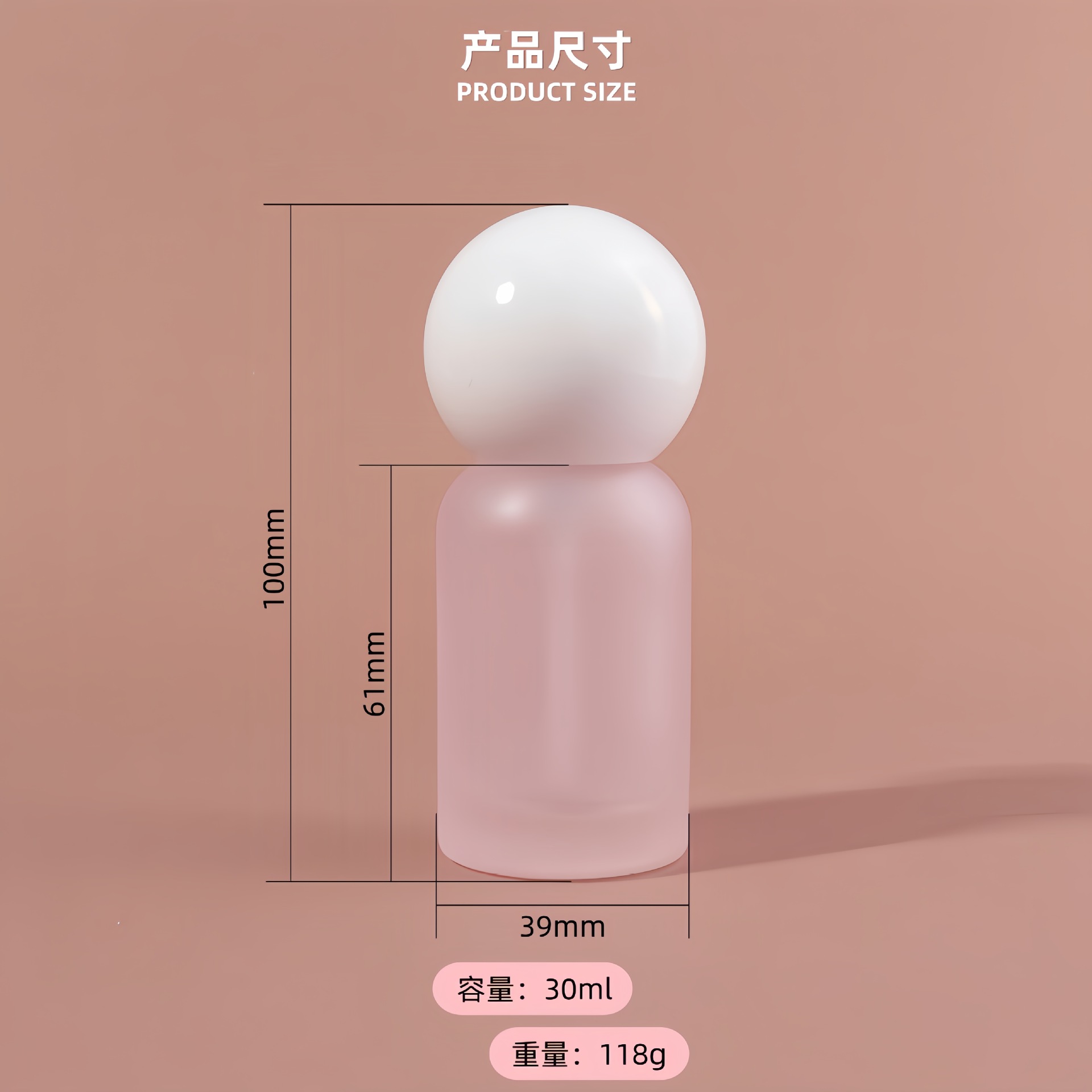 30毫升精华透明精油滴管瓶 圆肩粉色球形按压乳液磨砂30ml玻璃瓶