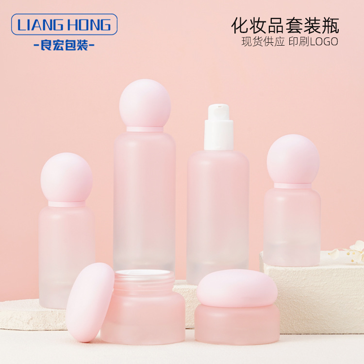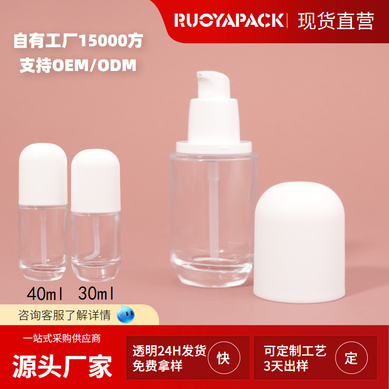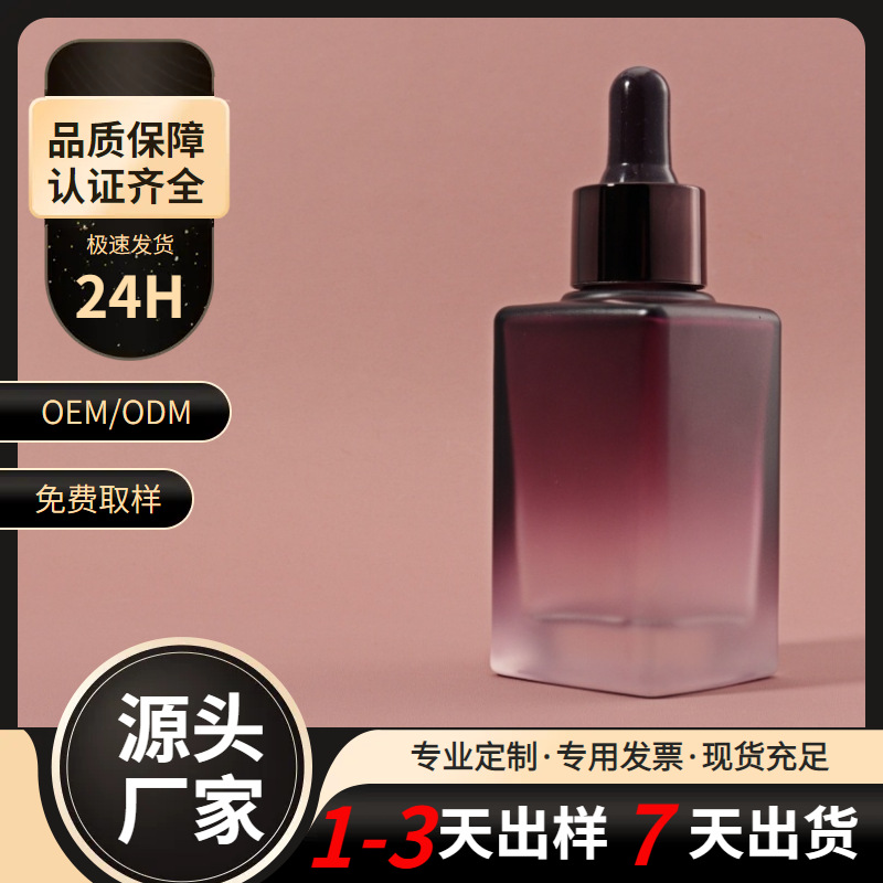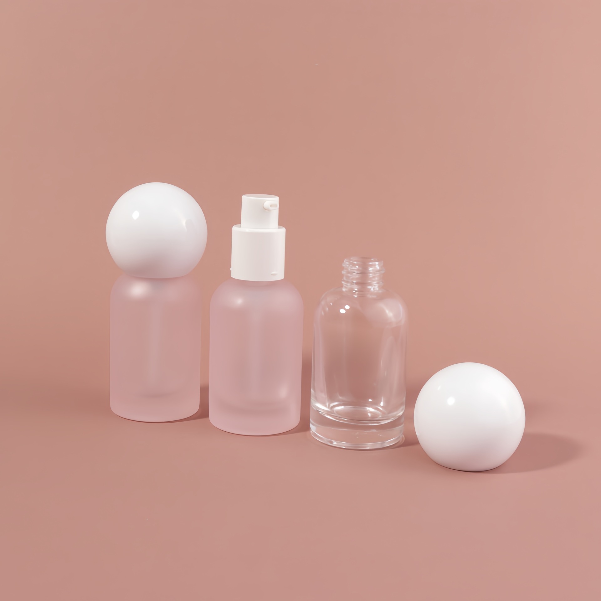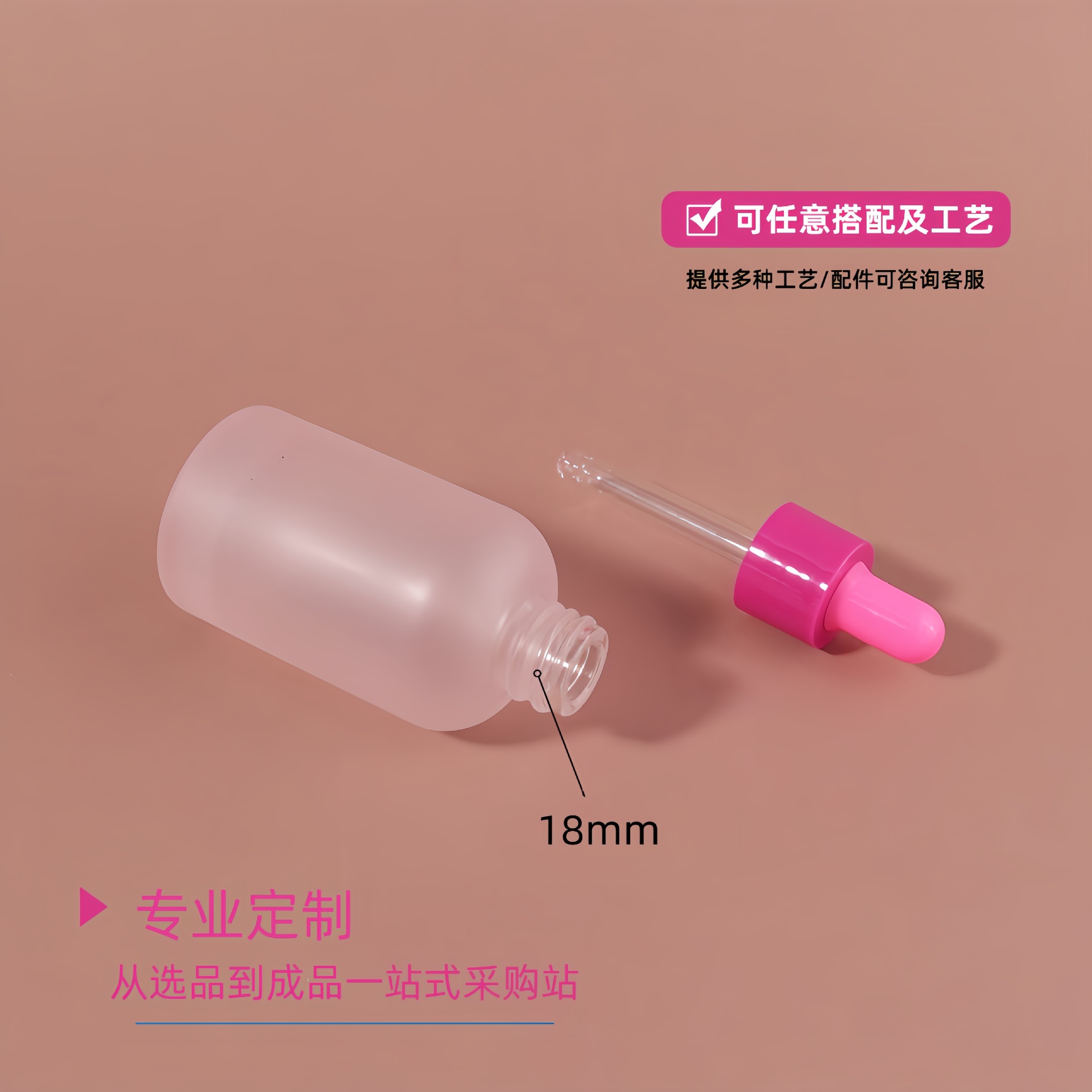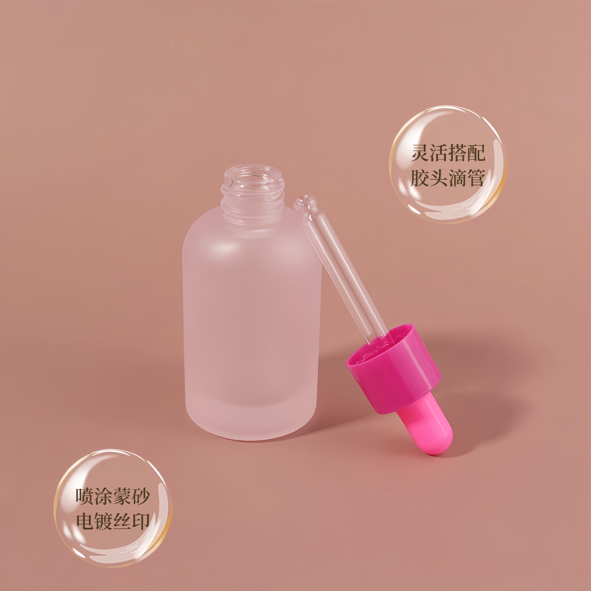 30毫升精华透明精油滴管瓶 圆肩粉色球形按压乳液磨砂30ml玻璃瓶