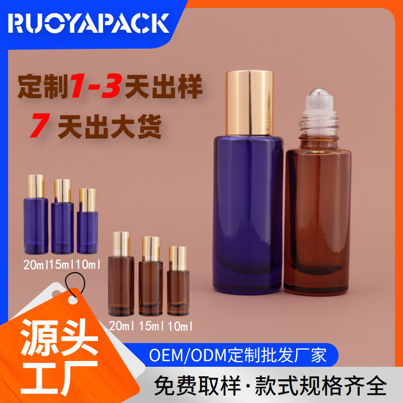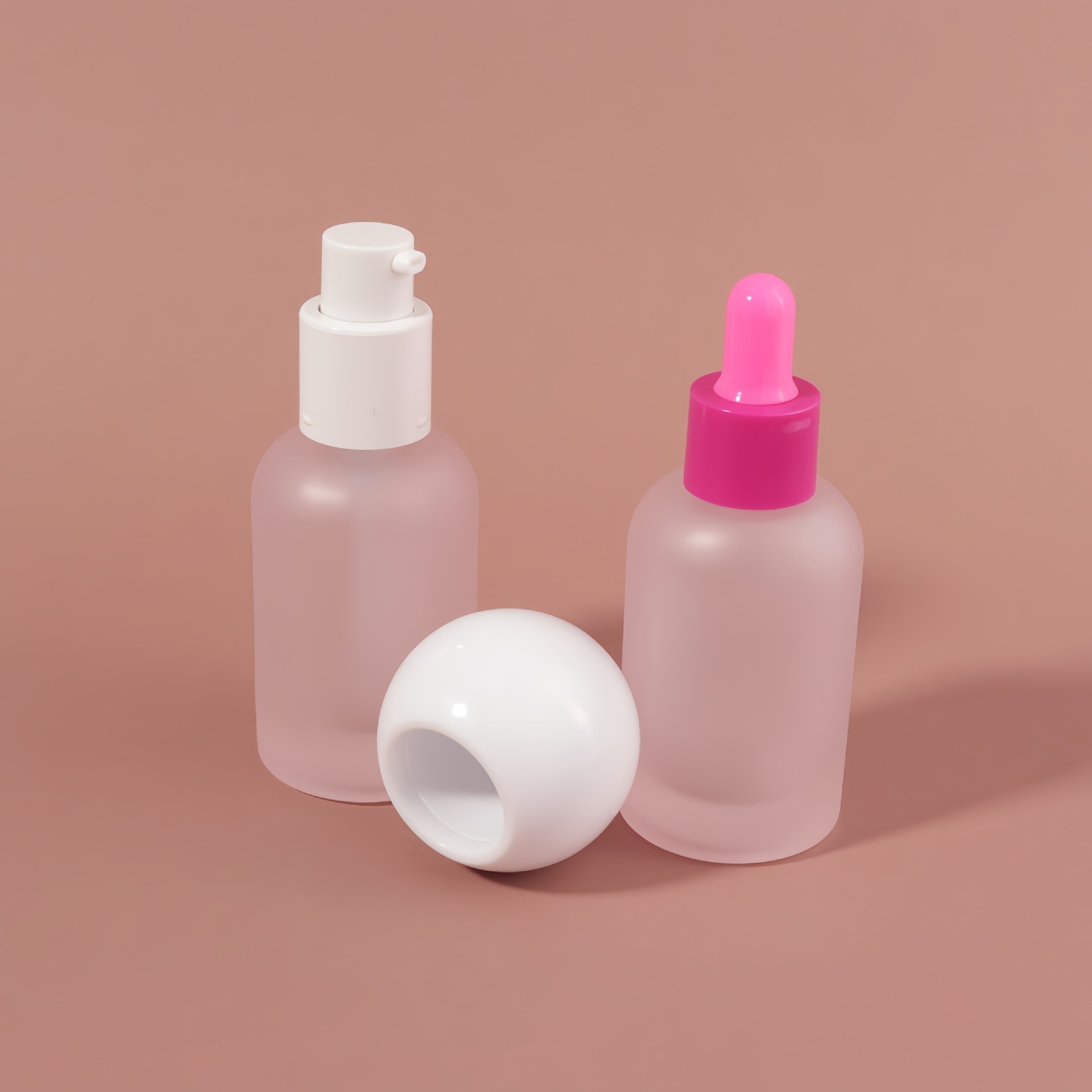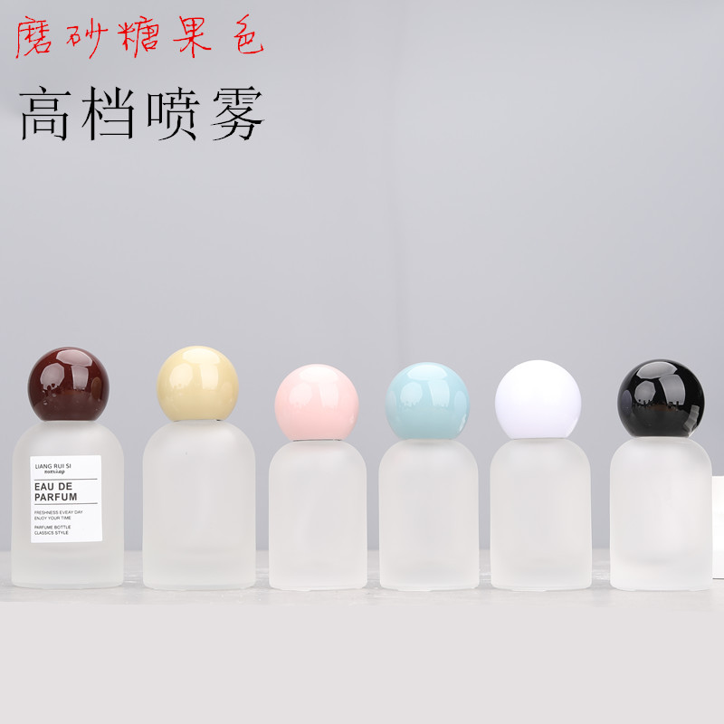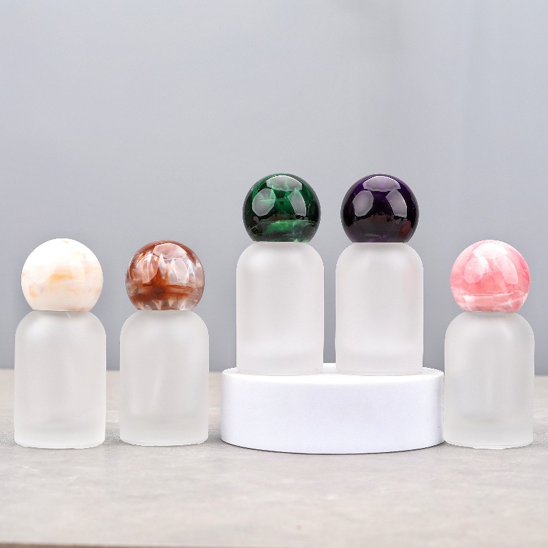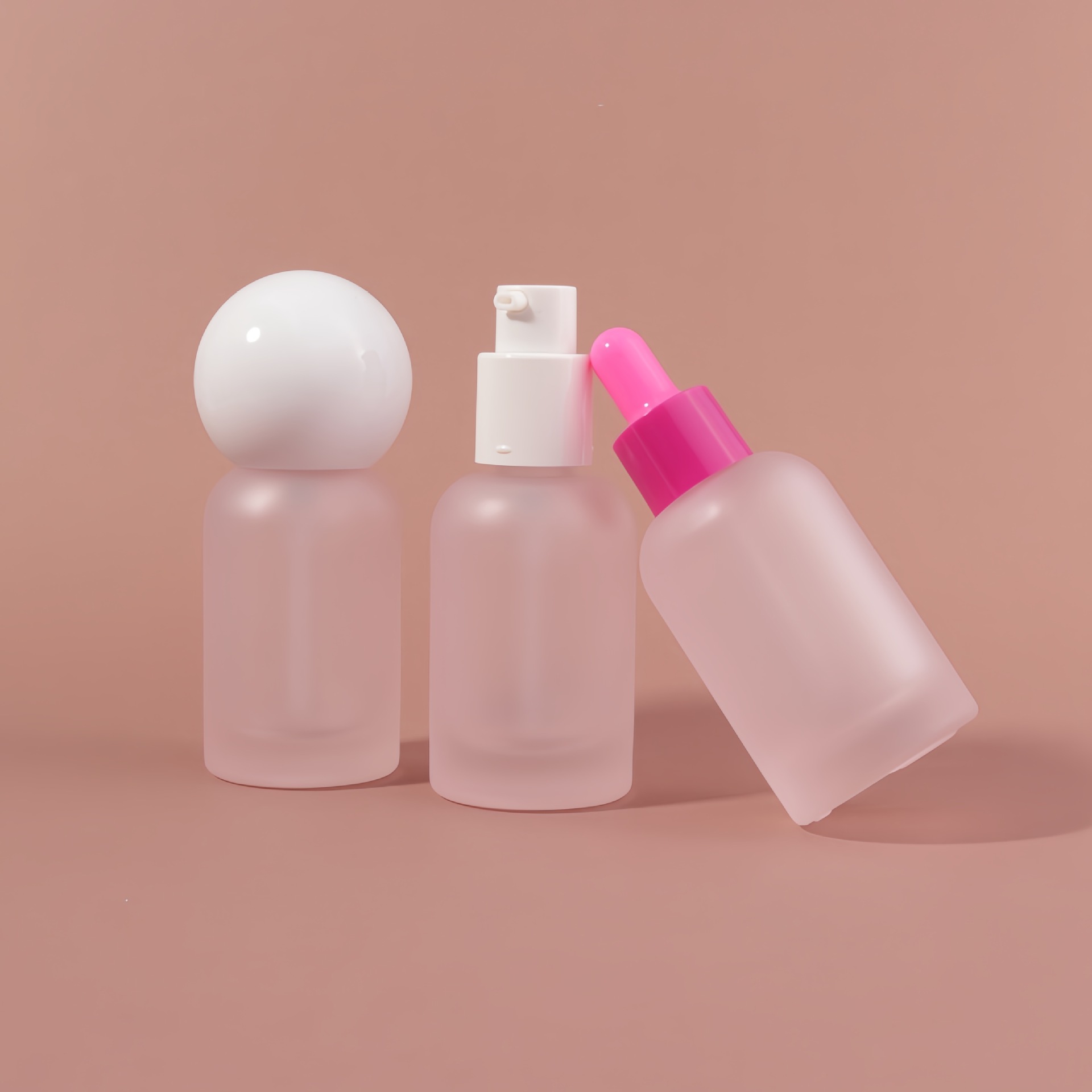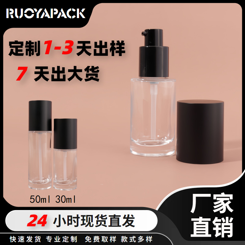 30毫升精华透明精油滴管瓶 圆肩粉色球形按压乳液磨砂30ml玻璃瓶