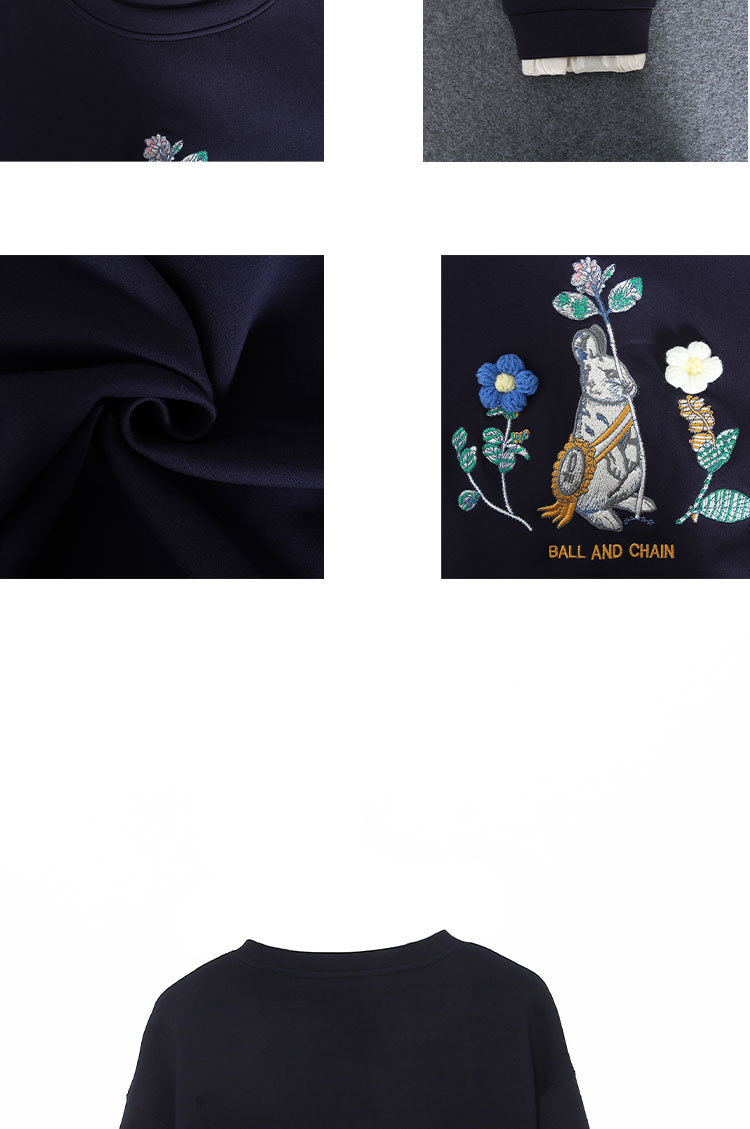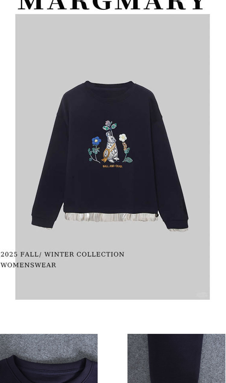 2025新型韓国版丸襟ファッション百合小衆長袖刺繍ガーディアン (240705)