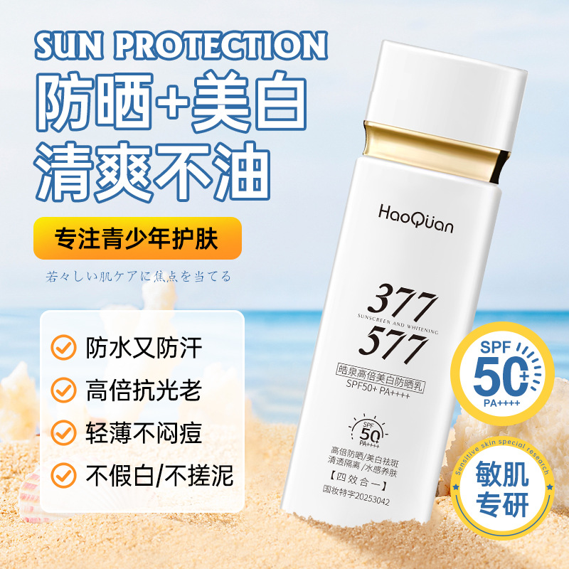 377 ハイパワー美白日焼け止めミルクフェイシャル女性用クリア保湿メイク前コンシーラー分離スリーインワン無地日焼け止め