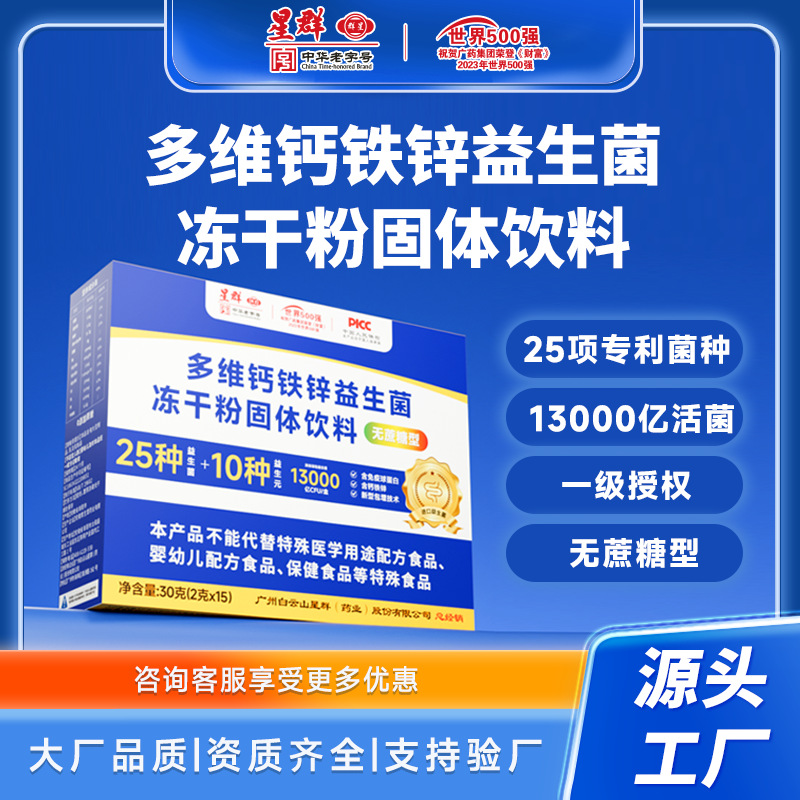 輸入株広州白雲山多次元カルシウム鉄亜鉛益生菌凍結乾燥粉固体飲料源メーカー