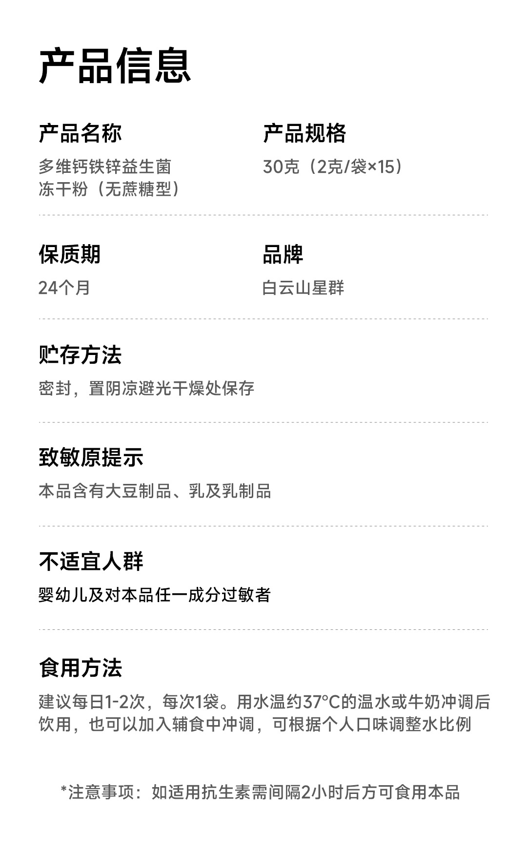 広州白雲山多次元カルシウム鉄亜鉛プロバイオティクス冷凍乾燥粉固体飲料120枚96gメーカー直供