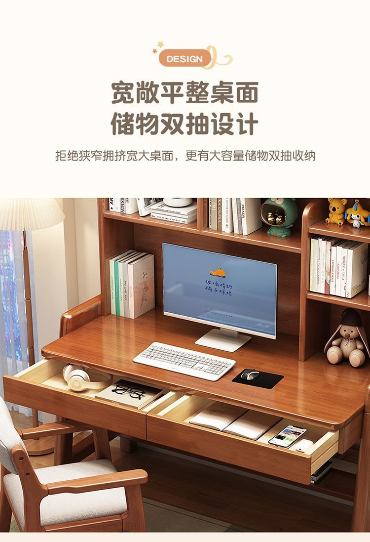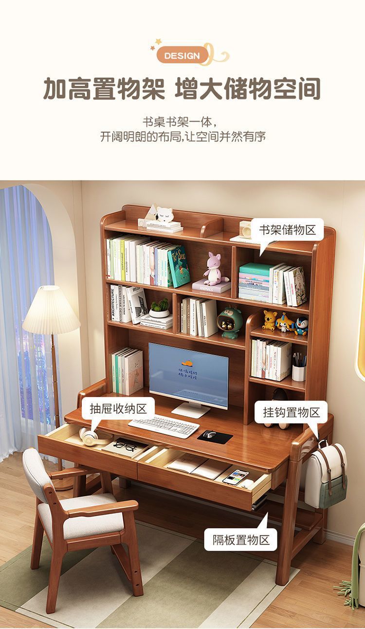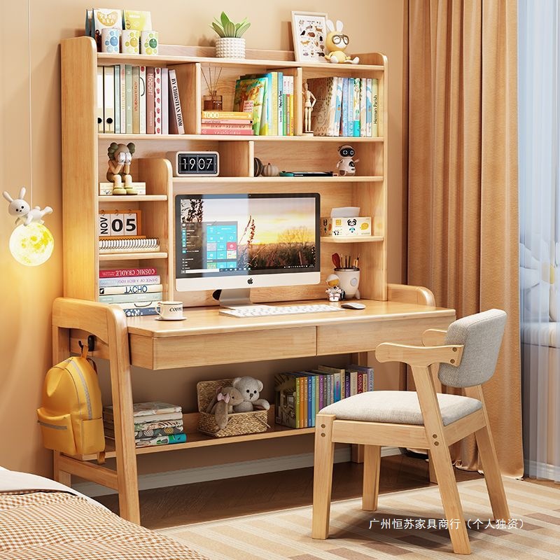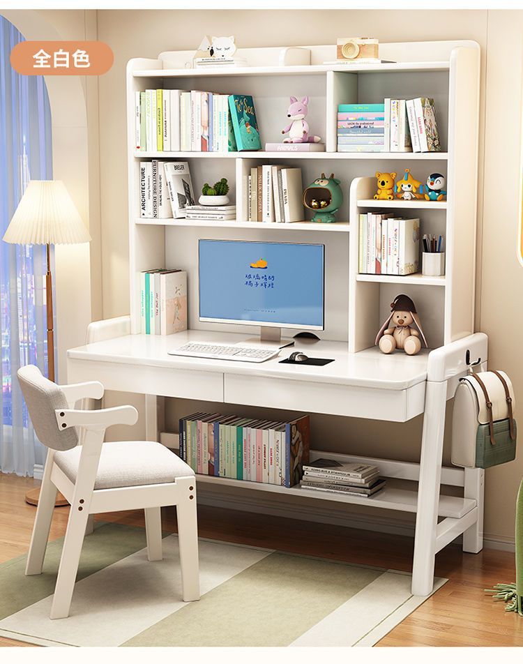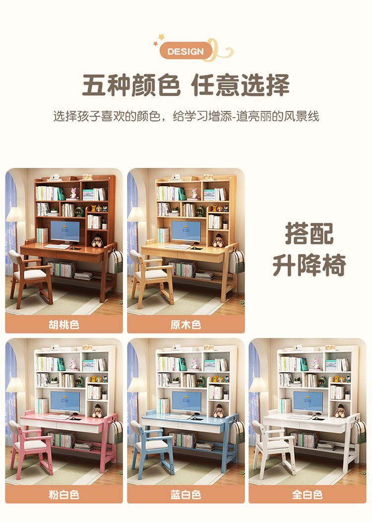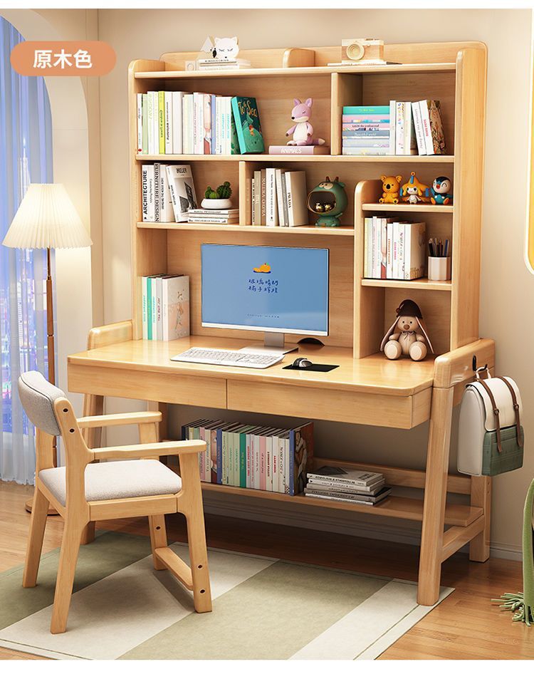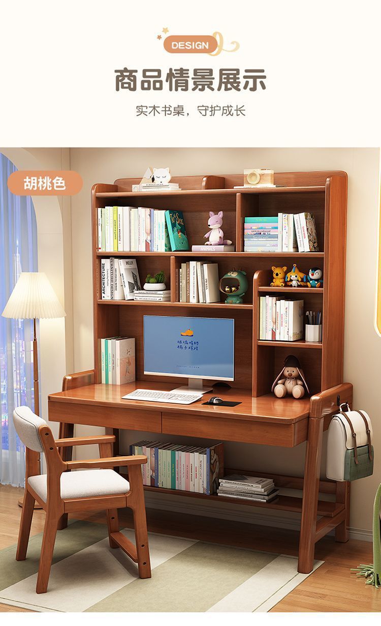 【店铺热销】实木书桌带书架一体桌简约家用可升降儿童学习桌卧室