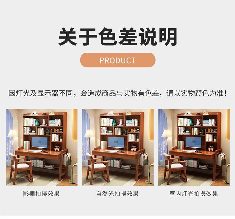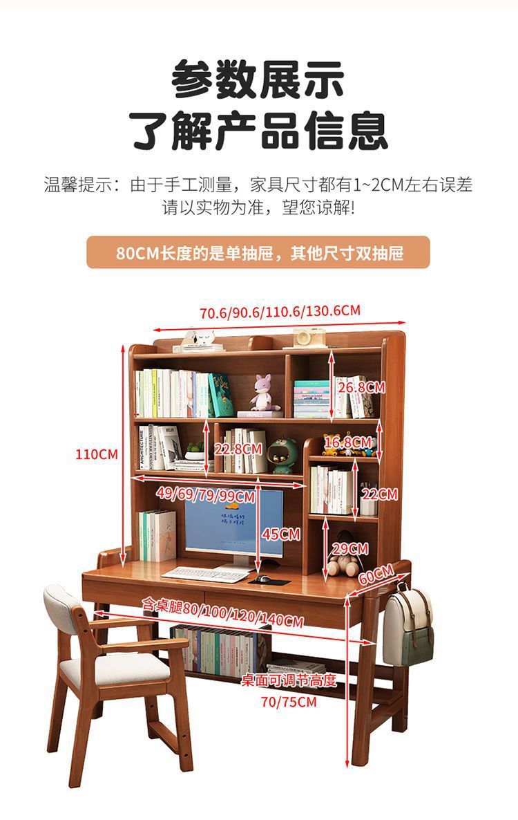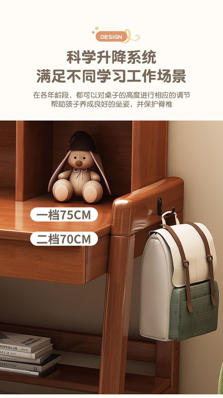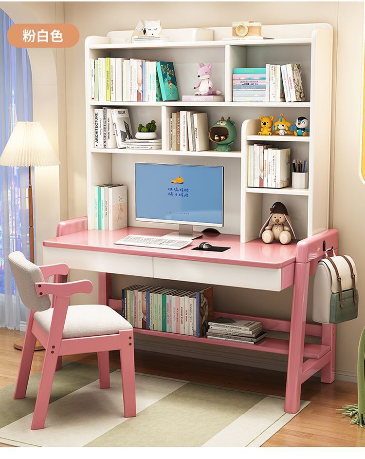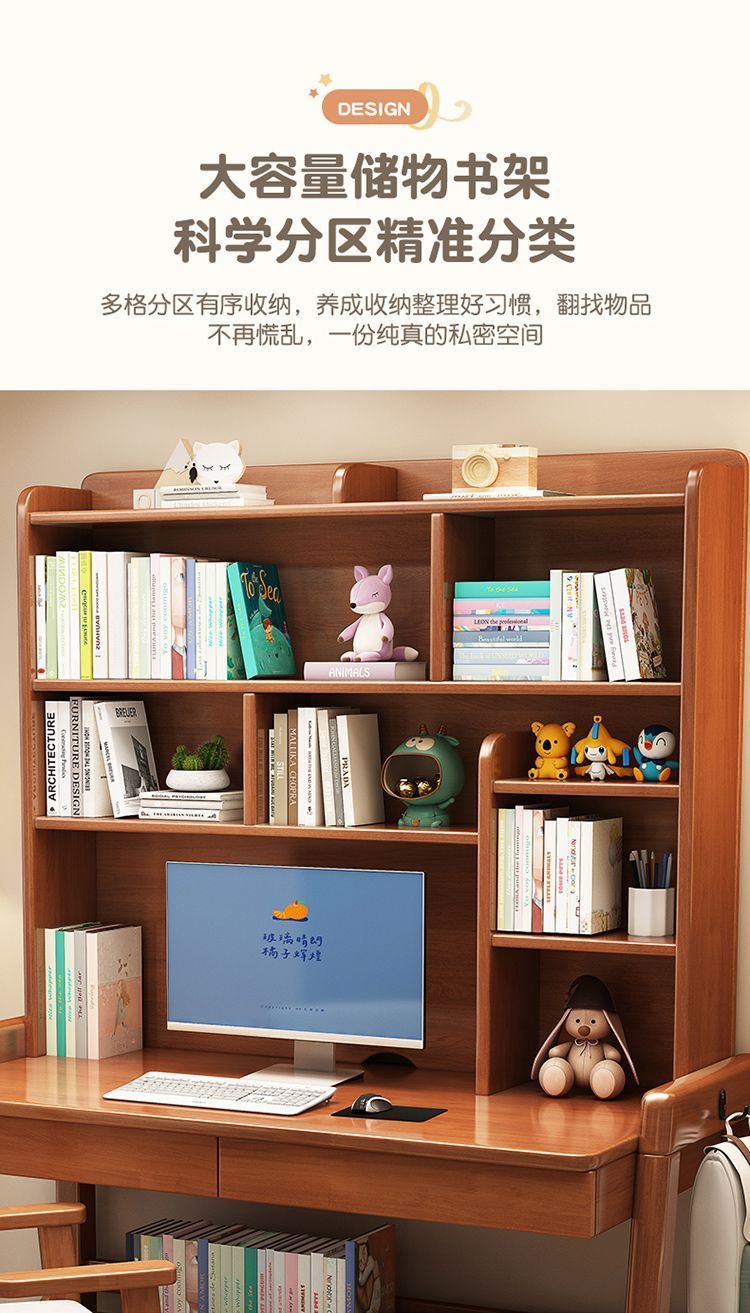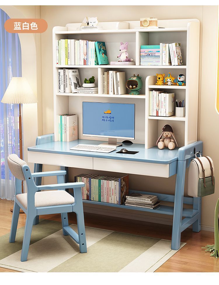 【店铺热销】实木书桌带书架一体桌简约家用可升降儿童学习桌卧室