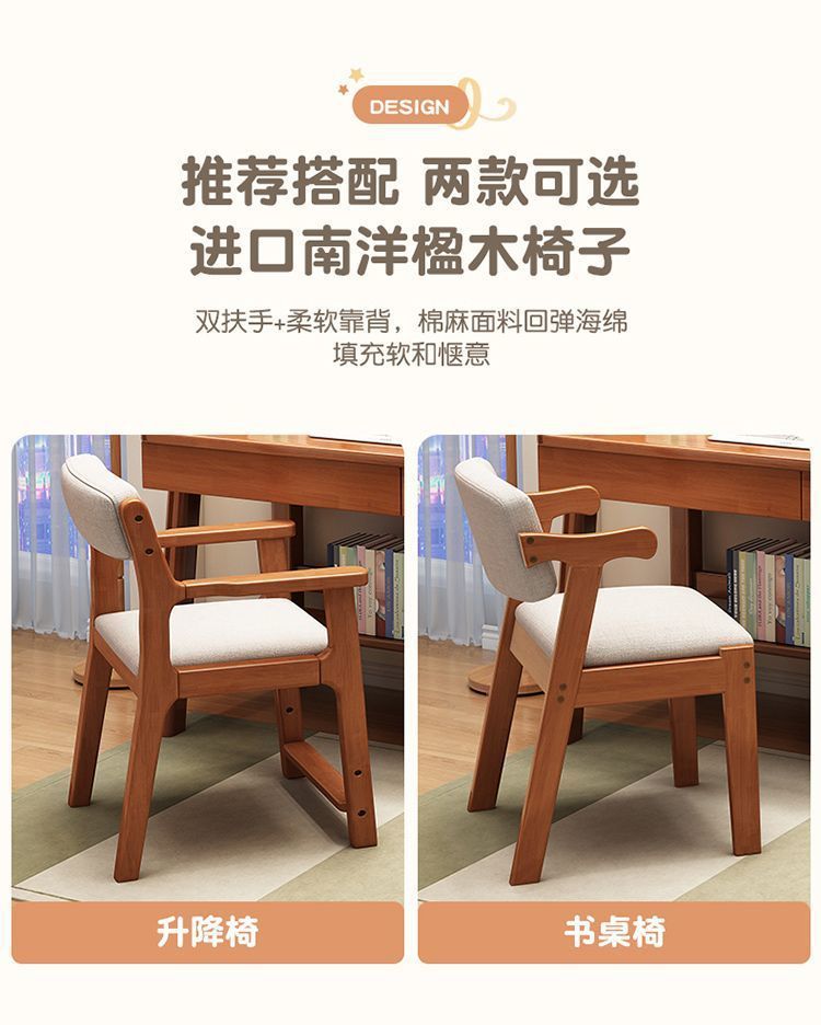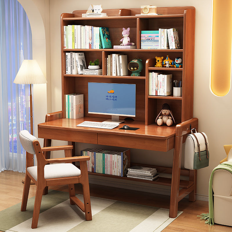 实木书桌书架可升降一体式儿童学习桌卧室简约家用中小学生写字桌
