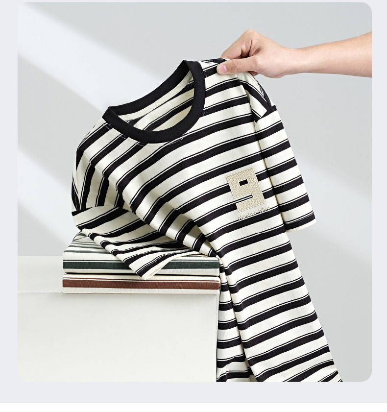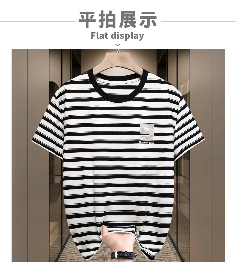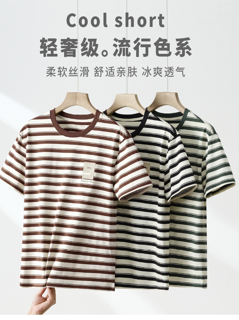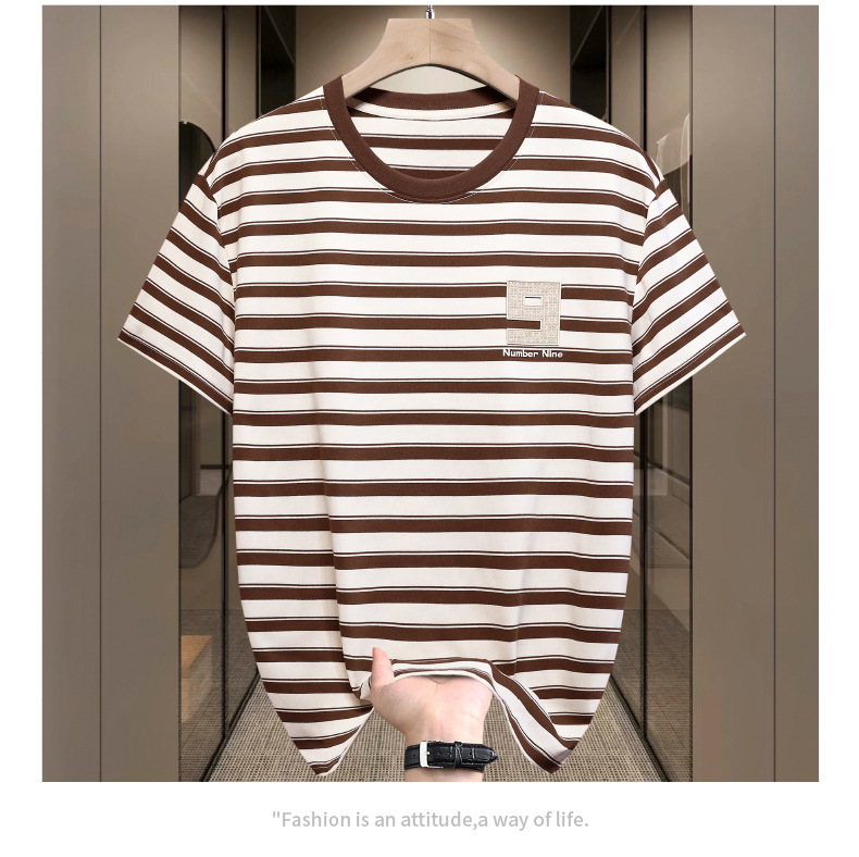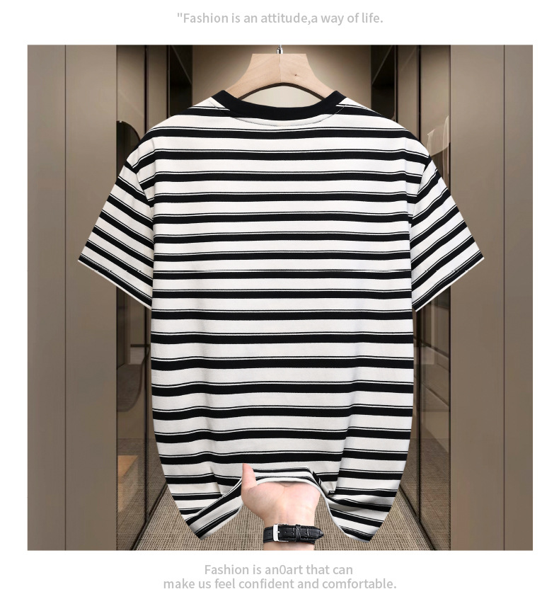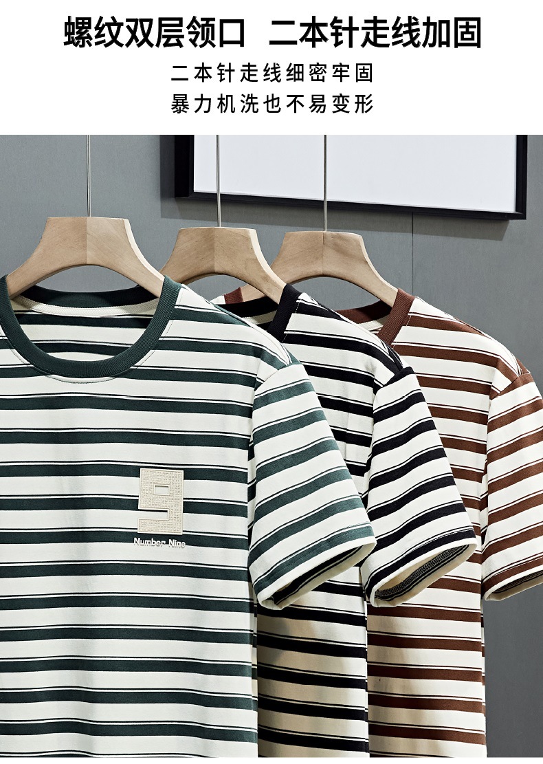 夏の新型半袖tシャツ男性カジュアルで快適な薄いファッションスポーツ丸首ストライプtシャツ上着