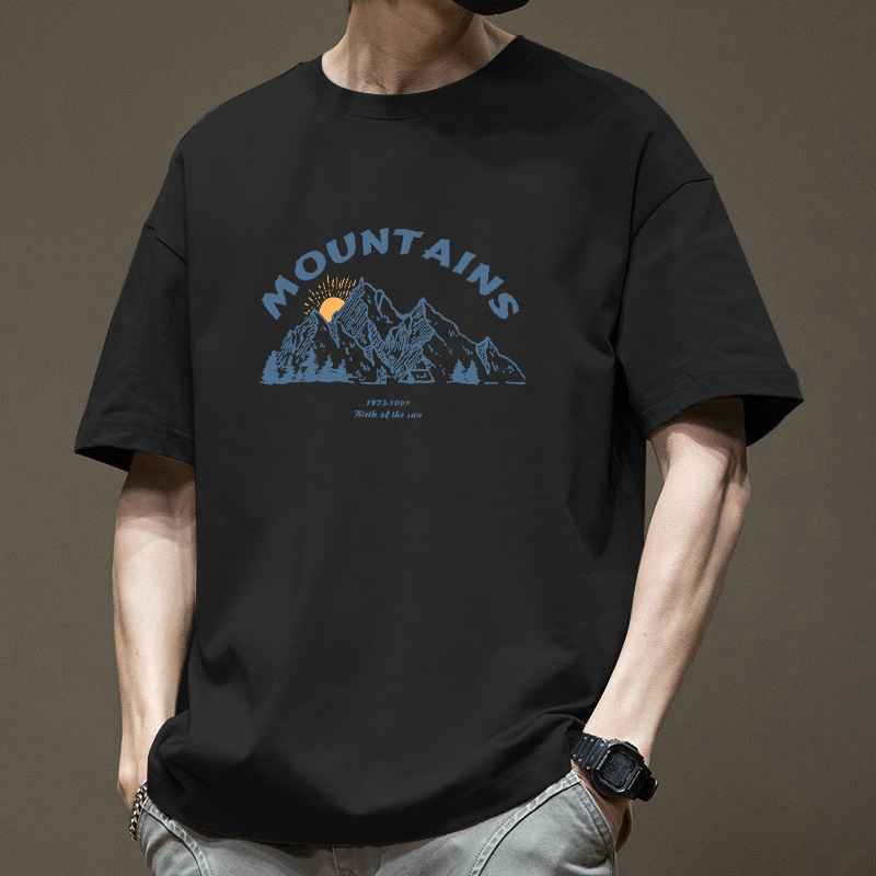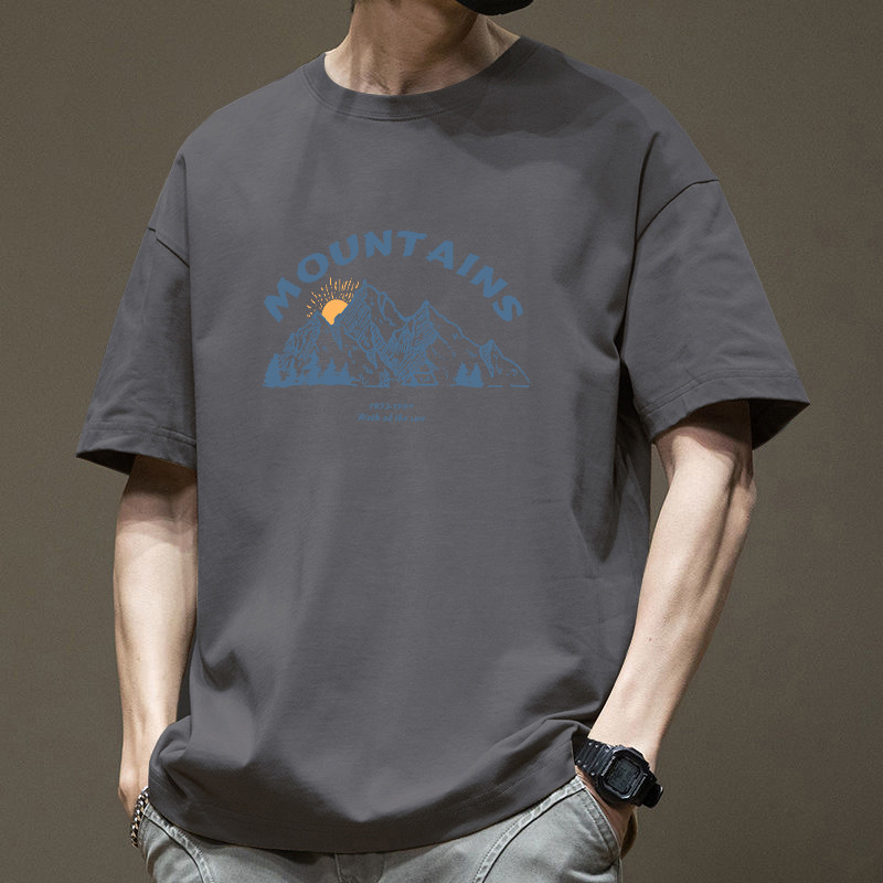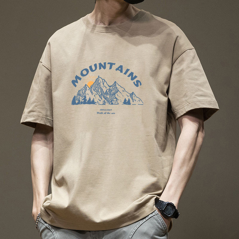 半袖tシャツ男性夏2025新ファッション純綿ゆるい丸首半袖上着プリントtシャツ