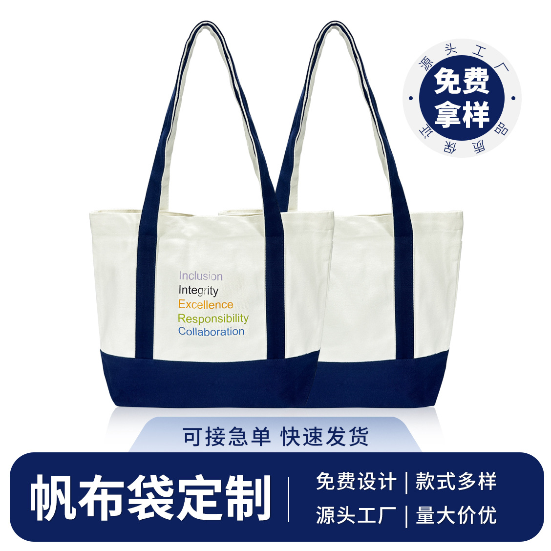 帆布袋定制logo印文字图案大容量环保购物棉布袋子拼接帆布包定做