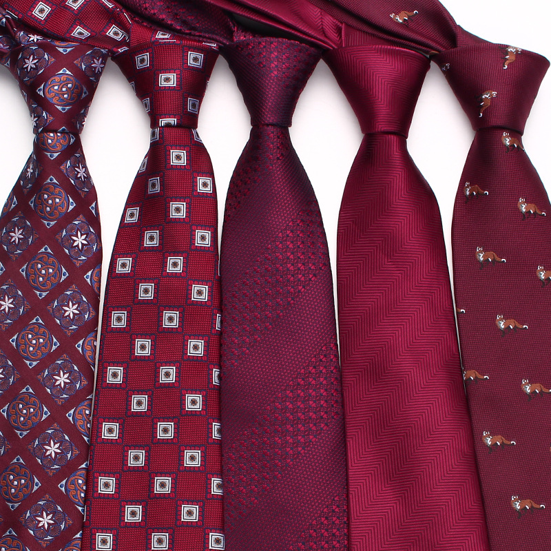 ワインレッドのレトロなネクタイの男性新郎の連れ合いの結婚祝いのネクタイの色はポリエステルの糸のビジネスネクタイの卸売りを編みます。