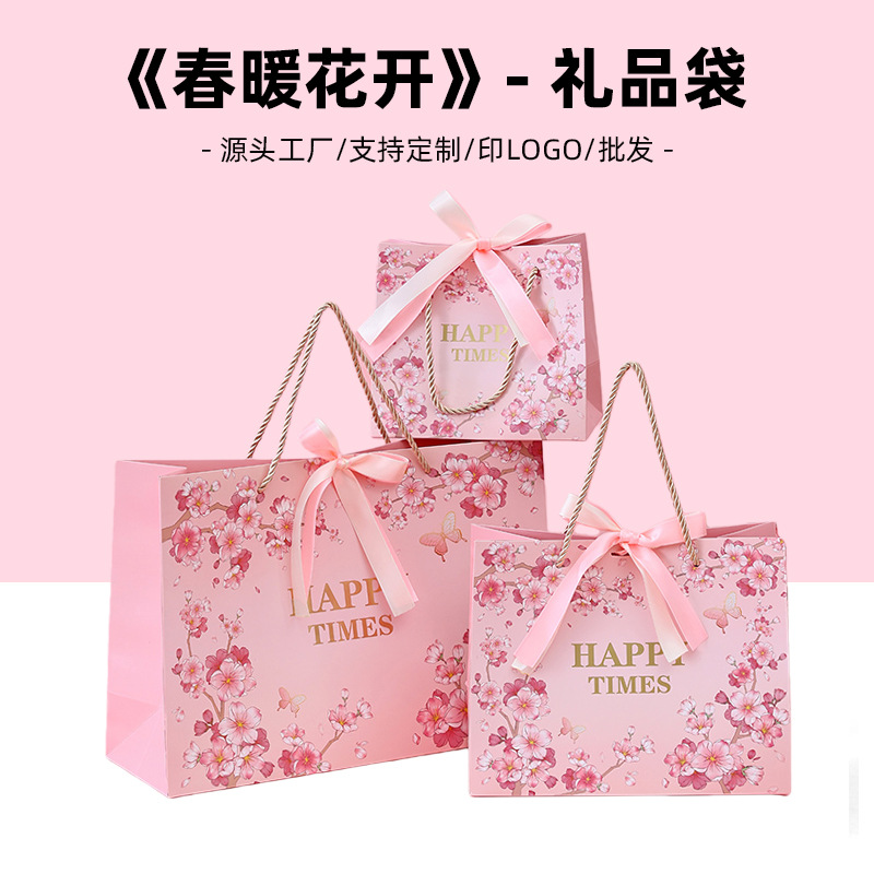 严选樱粉花语礼品袋送丝带服装购物袋饰品糖果伴手礼袋高级礼物包