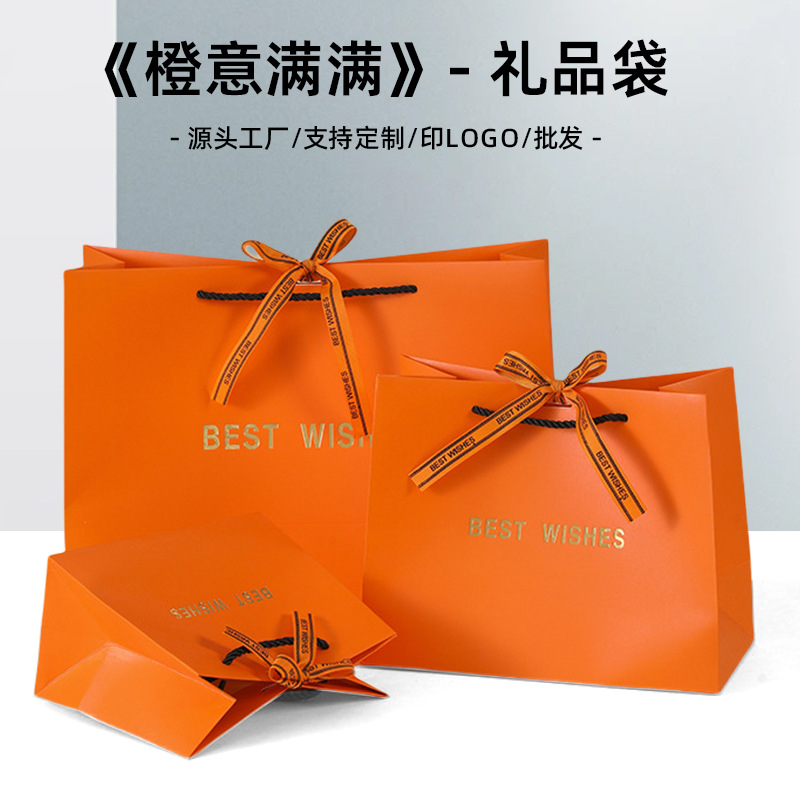 严选高级感橙色礼品袋手提袋服装购物复古国风生日伴手礼简约纸袋