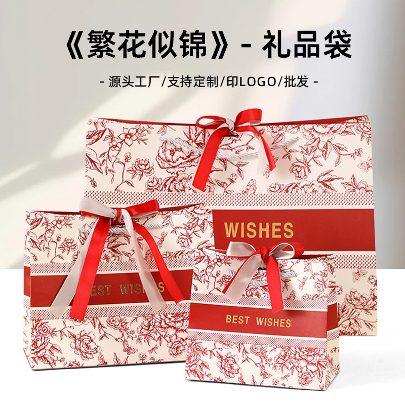 找工厂高级感手提袋复古国风红色袋子生日礼物礼品袋喜糖伴手礼袋