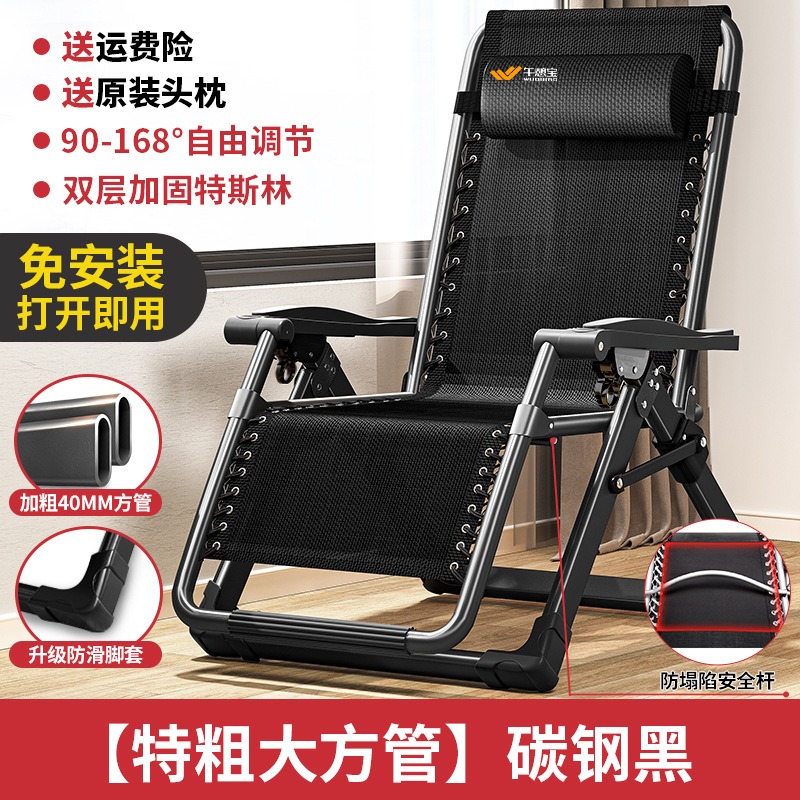家用折叠躺椅休闲老人阳台靠背椅办公室可坐可躺午休睡椅子高碳钢