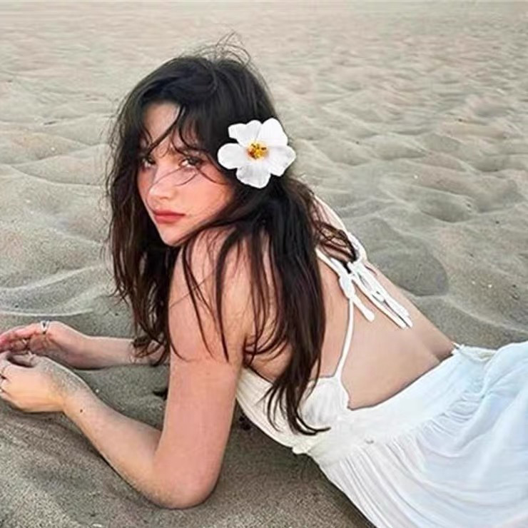 森系雰囲気感胡蝶蘭ヘアピン超仙ネット赤旅行写真前髪クリップ側花ヘアピン