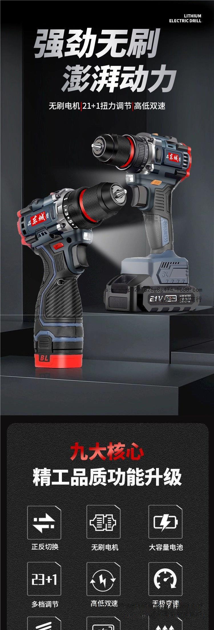 東城同金ブラシレス小型鋼砲大電力充電ドリル多機能家庭用懐中電灯ドリル充電電動スクリューを適用する
