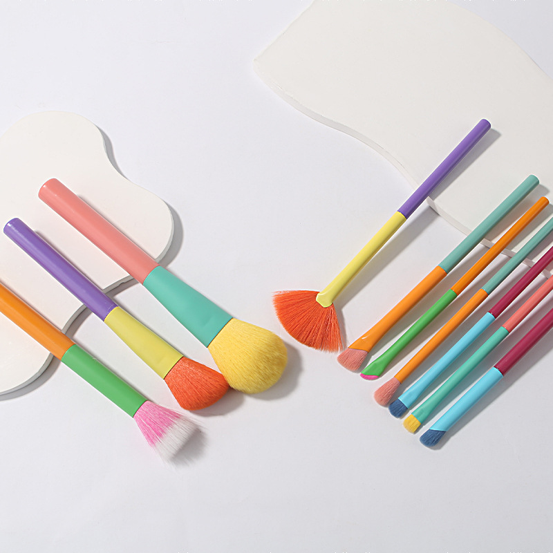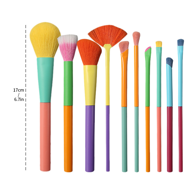 跨境 新款10支水彩化妆刷套装全套多色彩色便携美妆化妆工具 厂家