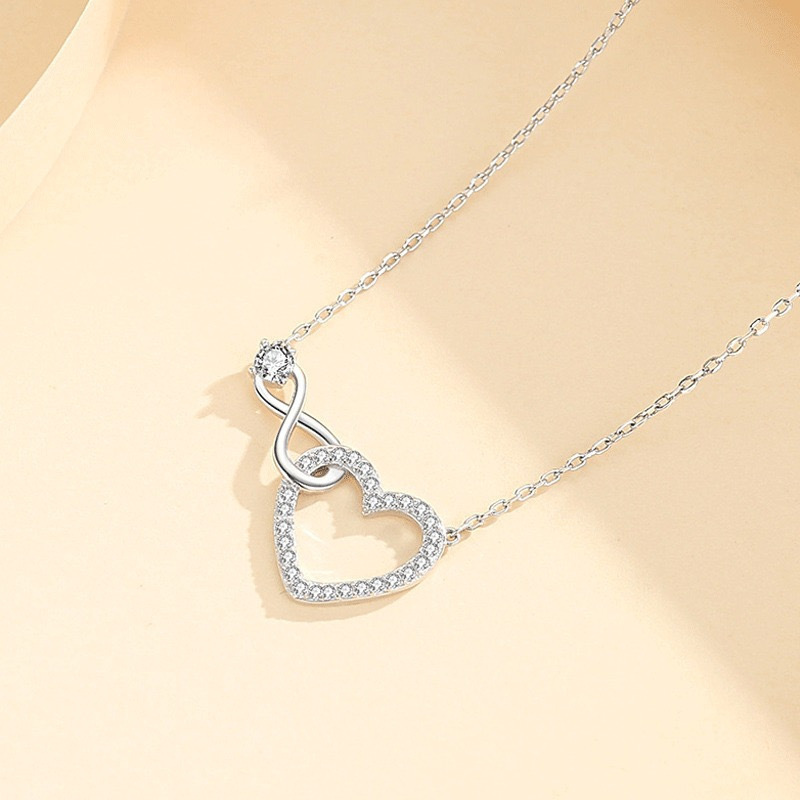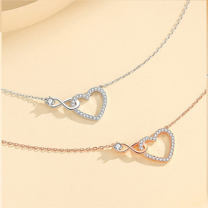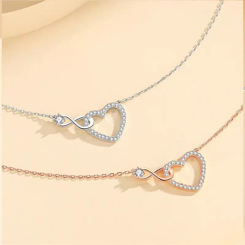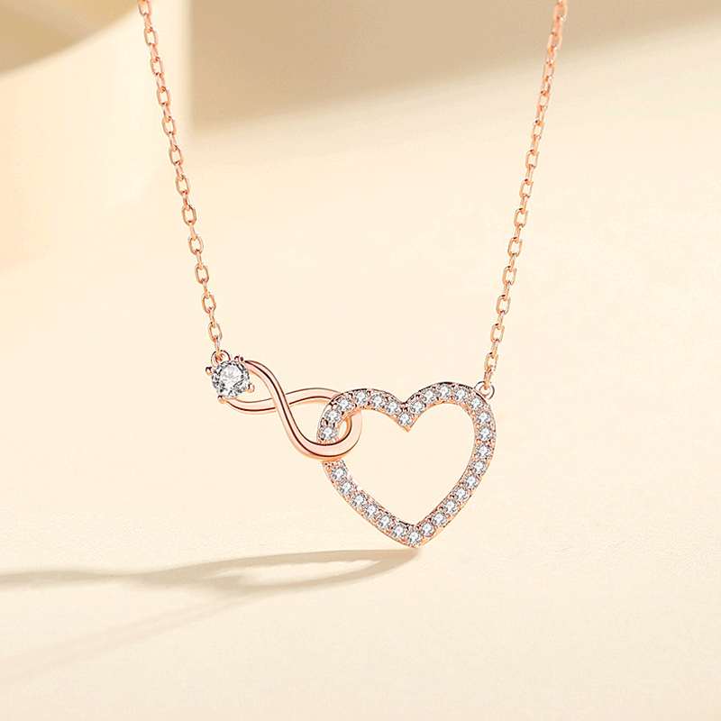 クロスボーダー爆発のシンプルな愛の8字の結び目のネックレスの女性のファッションの気質のハート型の鎖の骨のチェーンのバレンタインデーのペンダントのプレゼント