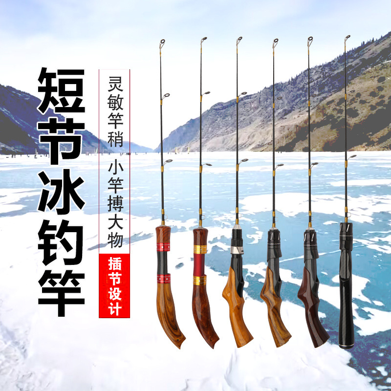 厂家直发冰钓竿实木竿柄钓鱼竿筏竿软调硬调冬季钓鱼竿超短冰钓竿