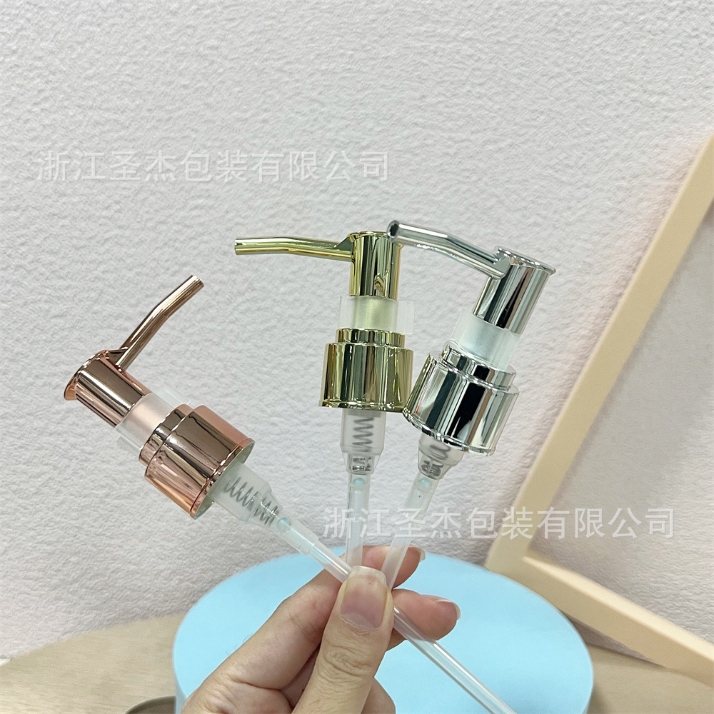 24歯押圧式電気めっきプラスチックポンプヘッド風呂化粧品バックル長口ローションポンプ小液量