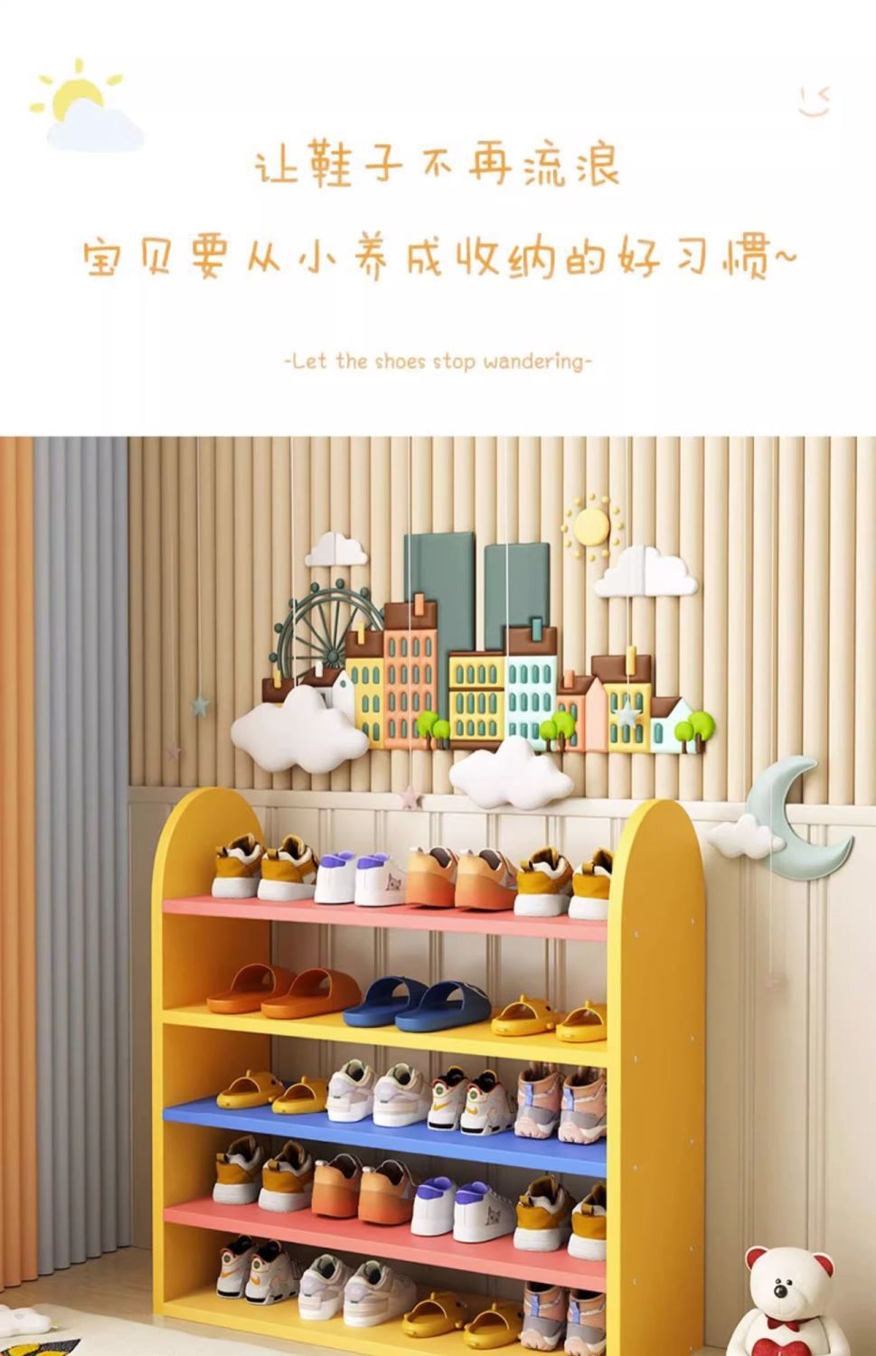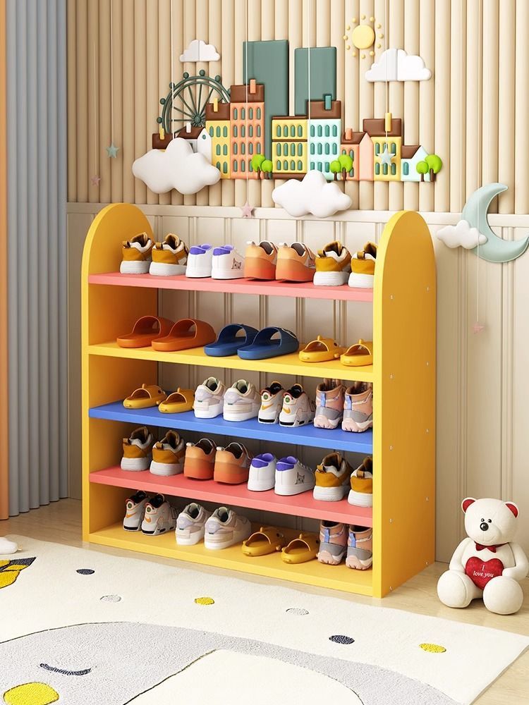 家用鞋柜儿童鞋架门口可爱小鞋架宝宝迷你小型卡通鞋架子室内多彩