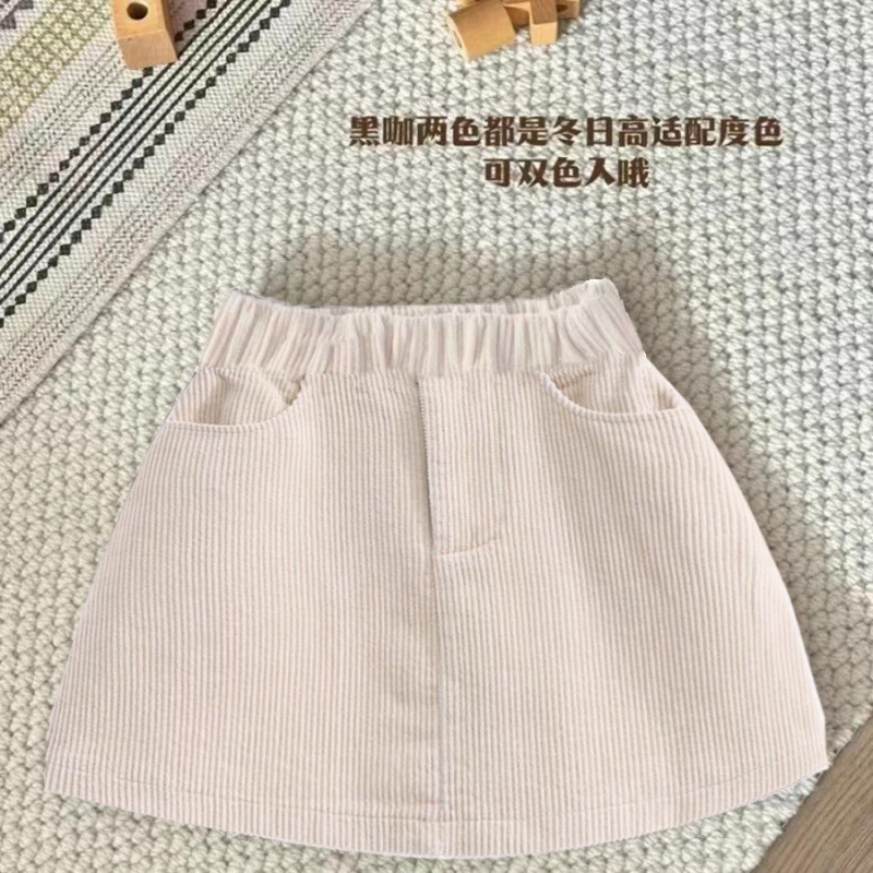 女の子のコーデュロイの字の半身のスカートの2024春は新しいスカートの子供の王女のスカートの秋の韓国版の赤ちゃんのスカートを詰めます。